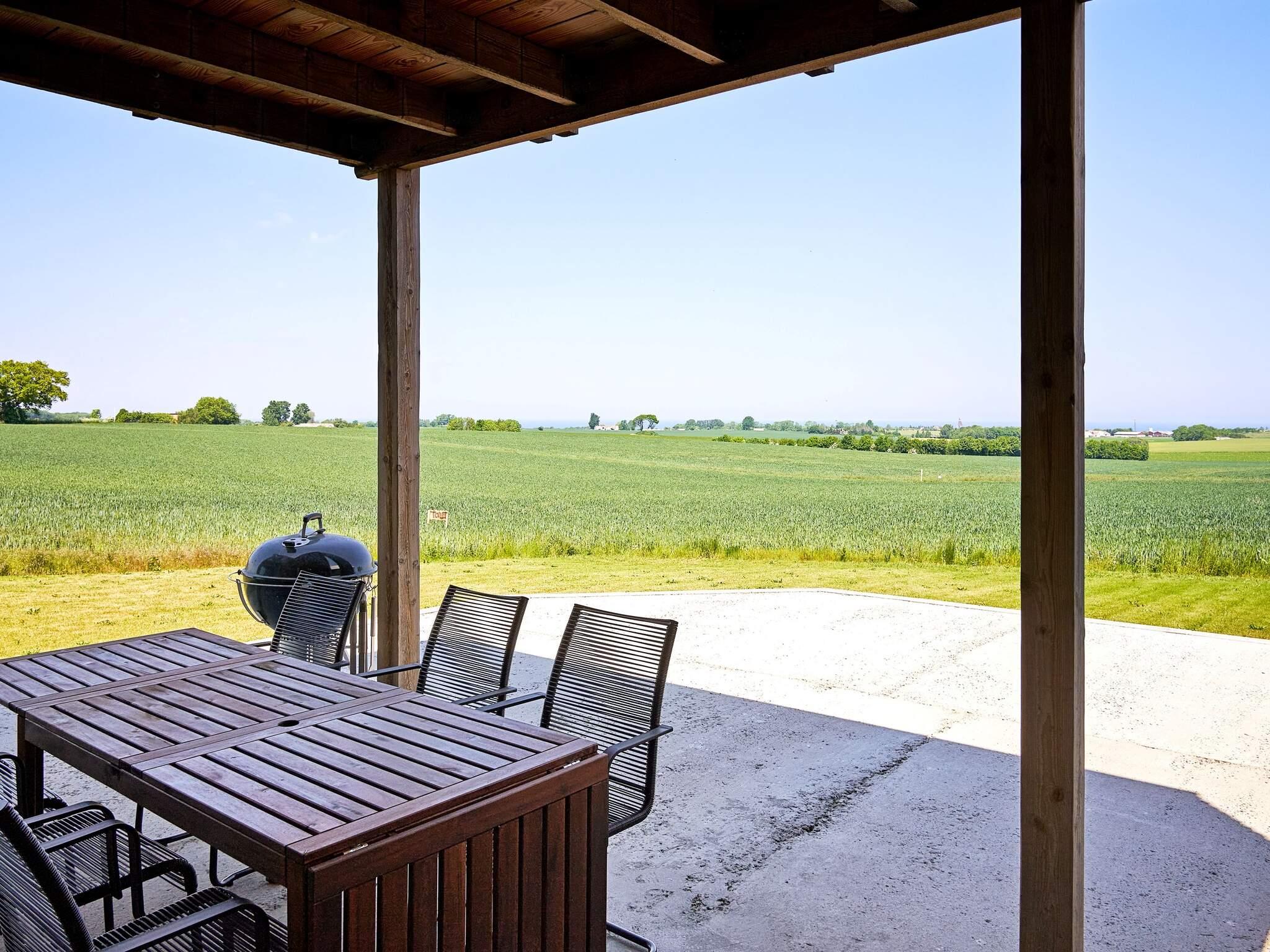 Im Außenbereich findet man zwei weitläufige Terrassenflächen, die teilweise überdacht und jeweils nach Westen und Osten ausgerichtet sind. Auf beiden Terrassen stehen Sitzgelegenheiten und Grill bereit.