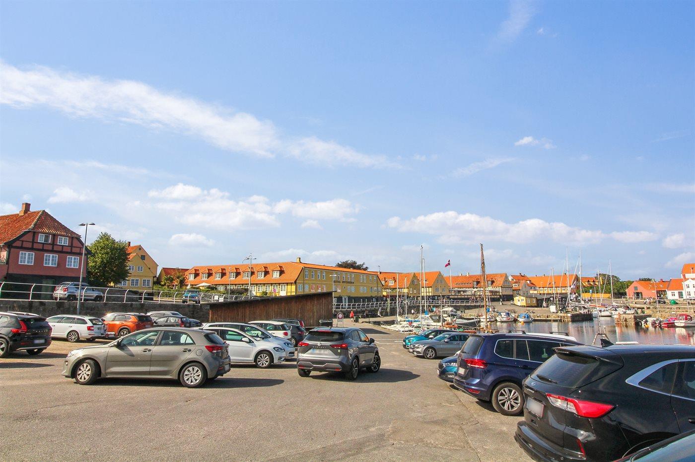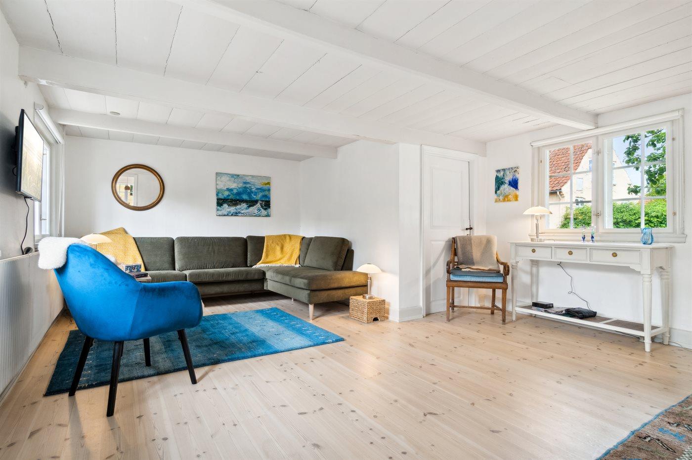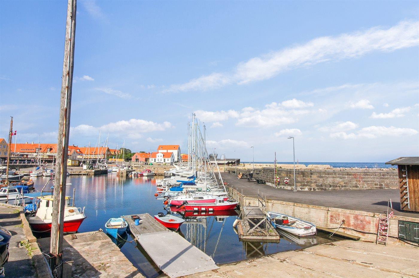 Rund um das Haus gibt es einen alten Garten mit sehr großen Felsvorsprüngen. Eine geschlossene Sonnenterrasse und ein gemütlicher Hof laden dazu ein, den Morgenkaffee zu genießen, wenn die Sonne über Dänemarks östlichster Handelsstadt aufgeht.