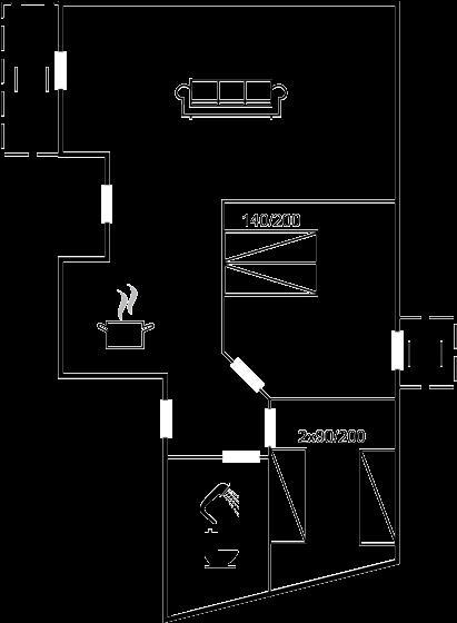 Die Schlafplätze verteilen sich auf 2 Schlafräume. 2 Schlafplätze in einem Doppelbett. 2 Schlafplätze in Einzelbetten.