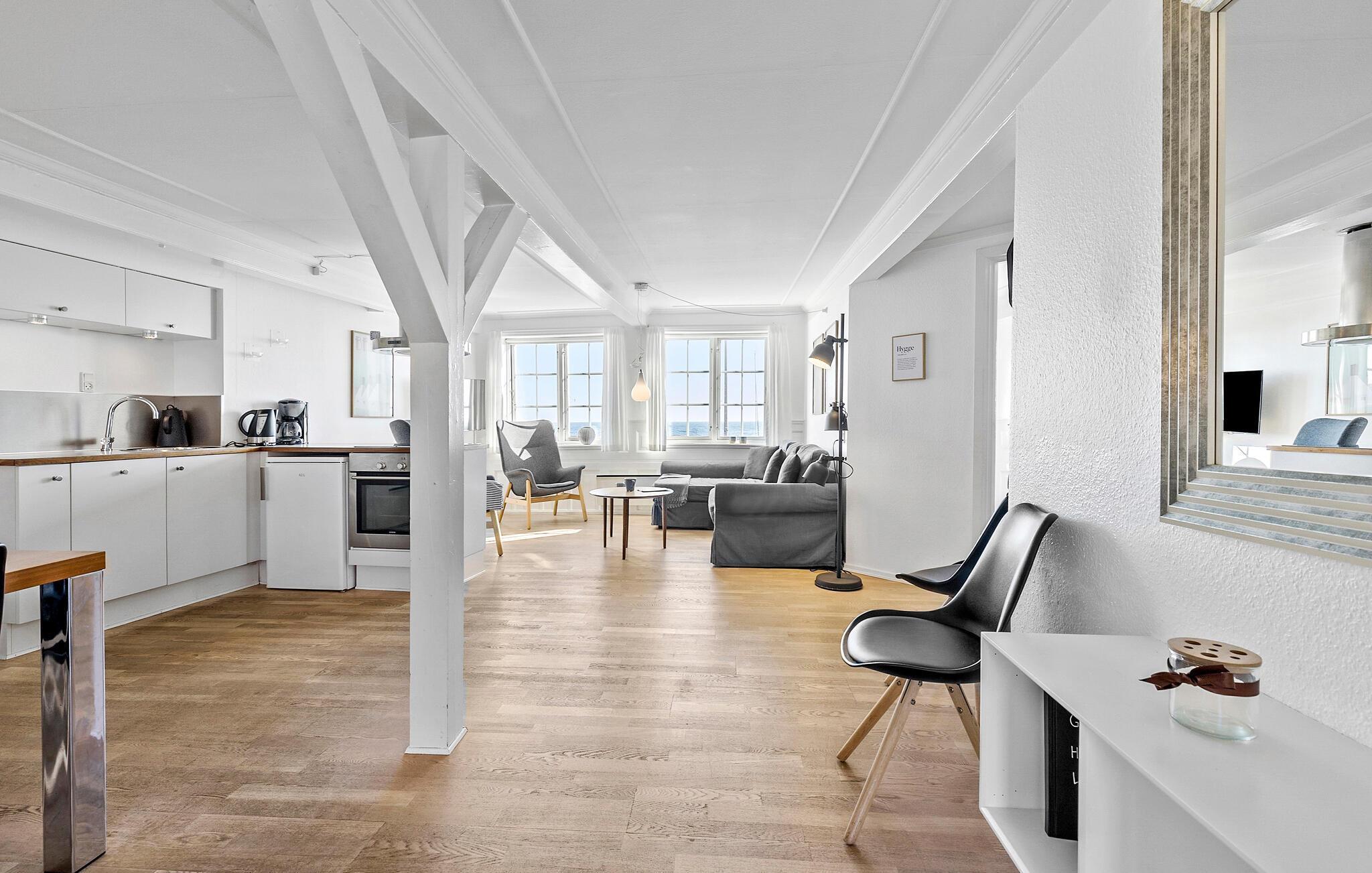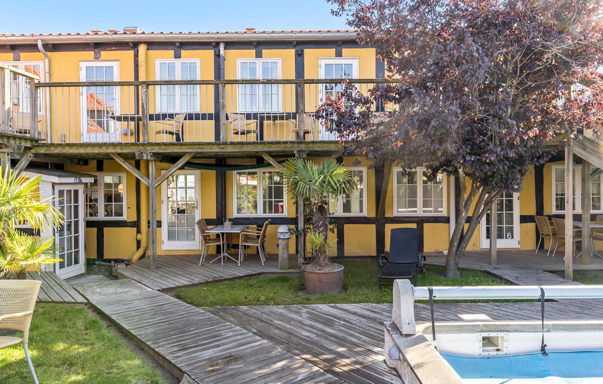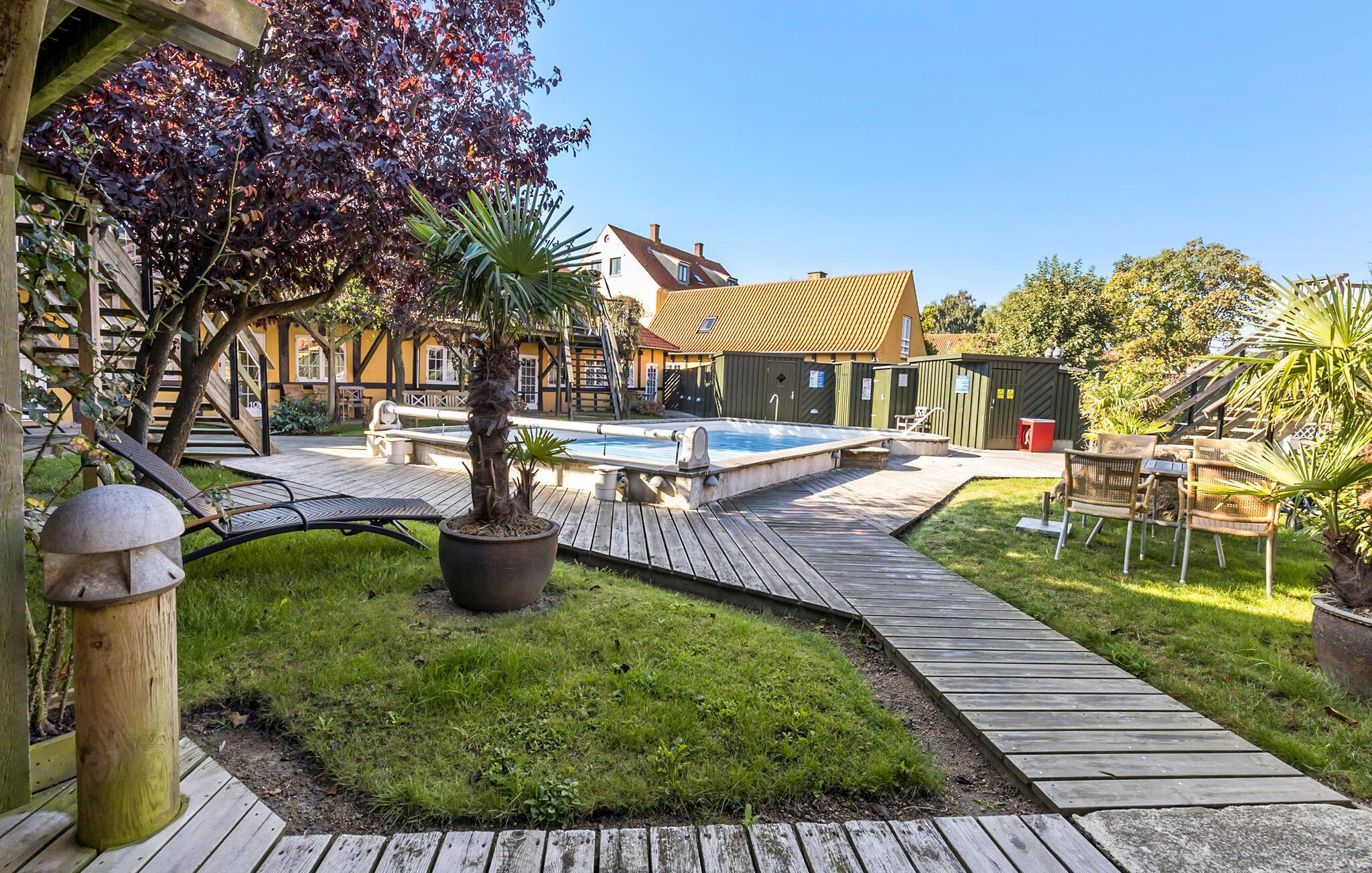 Am Hafen von Svaneke empfängt Sie in einem großen Fachwerkhaus mit mehreren Ferienwohnungen diese charmante und stilvolle Wohnung. Treten Sie ein und genießen die liebevolle Dekoration, die schönen Möbel und die Wohlfühlatmosphäre, die Sie umgibt. Hier finden Sie alles vor, was Sie und Ihre Lieben zum Entspannen vom Alltag brauchen. Beginnen Sie Ihre Ferientage mit einem leckeren Frühstück auf der überdachten Terrasse, nachdem Sie am frühen Morgen schon die ersten Bahnen im Swimmingpool gezogen haben.