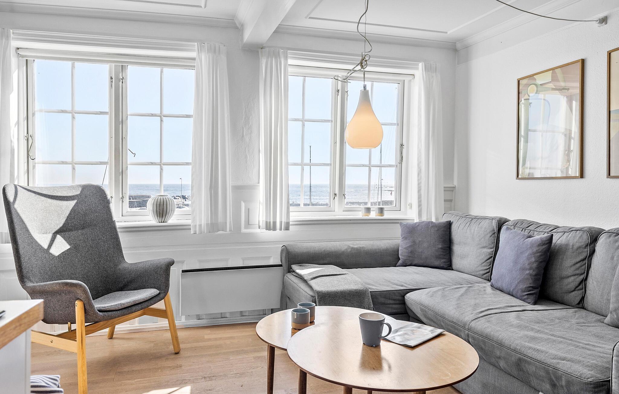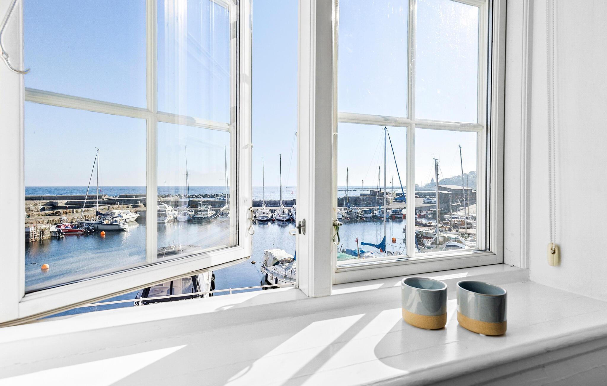 Moderne Ferienwohnung mit Meerblick, Gemeinschaftspool und charmanter Lage am Hafen von Svaneke.