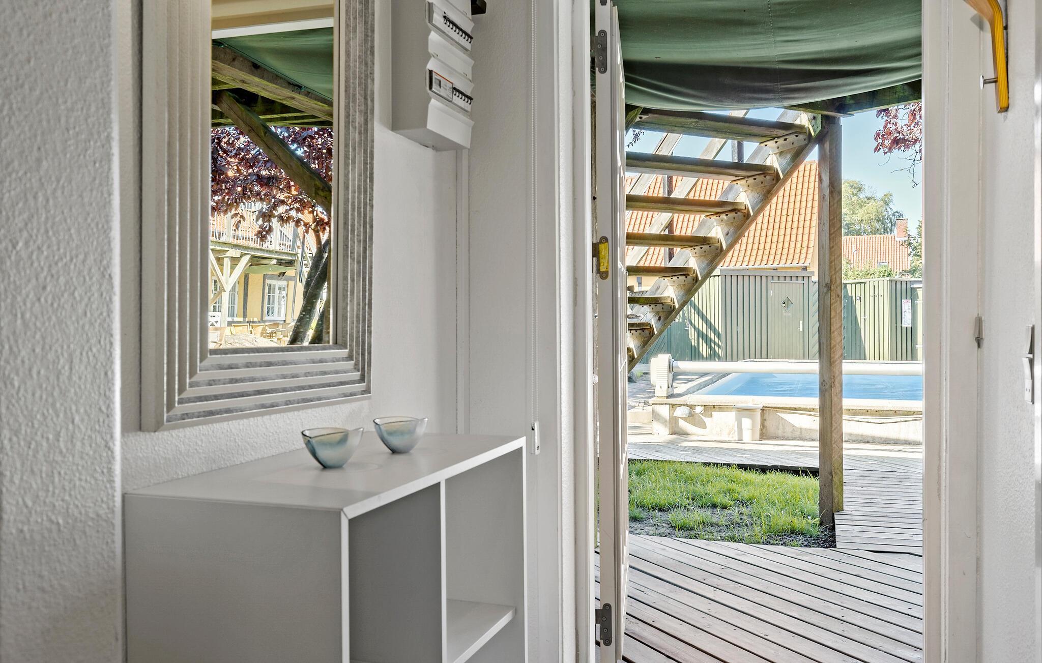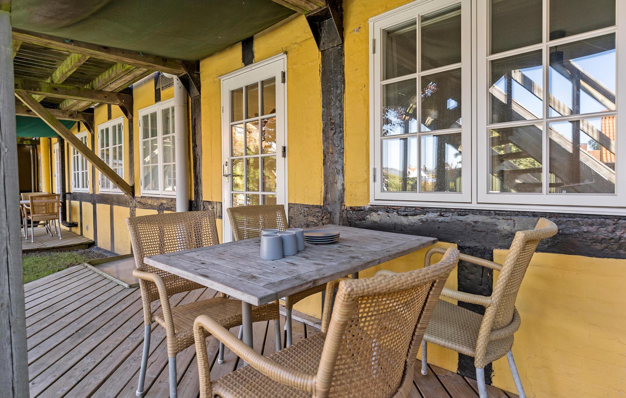 Am Hafen von Svaneke empfängt Sie in einem großen Fachwerkhaus mit mehreren Ferienwohnungen diese charmante und stilvolle Wohnung. Treten Sie ein und genießen die liebevolle Dekoration, die schönen Möbel und die Wohlfühlatmosphäre, die Sie umgibt. Hier finden Sie alles vor, was Sie und Ihre Lieben zum Entspannen vom Alltag brauchen. Beginnen Sie Ihre Ferientage mit einem leckeren Frühstück auf der überdachten Terrasse, nachdem Sie am frühen Morgen schon die ersten Bahnen im Swimmingpool gezogen haben.