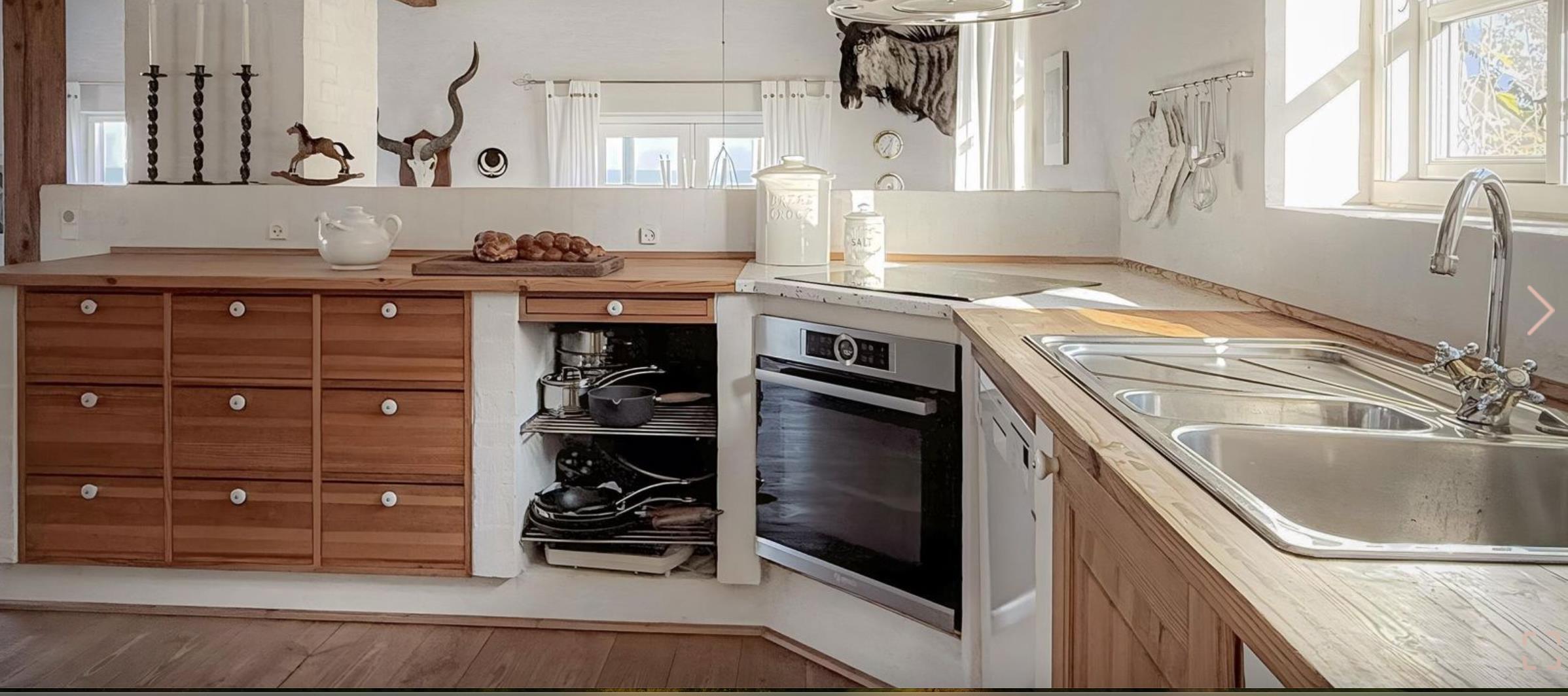 Nur einen Steinwurf von der Küste entfernt liegt dieses Ferienhaus mit Platz für sechs Personen. Hier genießen Sie Meerblick und ein eingezäuntes Grundstück, das Sicherheit für Kinder und Eltern bietet. Das Haus ist 118 m² groß und verfügt über drei Schlafzimmer, großzügige Wohnbereiche und praktische Ausstattung. Innen sorgt eine Wärmepumpe ganzjährig für angenehme Temperaturen. Küche und Wohnzimmer sind in einem offenen Raum vereint und führen direkt zur Terrasse, von der aus der Meerblick den Blick zum Horizont lenkt. Das Haus ist hell und funktional gestaltet – ideal zum Entspannen. Der eingezäunte Garten bietet windgeschützte Sonnenplätze, während die Kinder ungestört spielen können. Genießen Sie Ihren Morgenkaffee mit dem Rauschen der Wellen im Hintergrund oder beenden Sie den Tag mit einem Grillabend und Blick auf die Ostsee. Nur 50 Meter vom Haus entfernt erwarten Sie Felsformationen und klares Badewasser. Hier können Sie schwimmen, angeln oder einfach die Ruhe der Küste genießen. Die Nähe zum Meer ist einer der größten Vorzüge dieses Ortes. Die Umgebung ist bekannt für ihre Mischung aus Natur und Kultur. Das nahegelegene Städtchen bietet Cafés, Räuchereien und Kunsthandwerker. Lokale Märkte und kleine Galerien beleben die Gegend, ohne die friedliche Atmosphäre zu stören. Fahren Sie mit dem Rad entlang der Küste, wandern Sie durch die felsige Landschaft Bornholms oder besuchen Sie eine der vielen Sehenswürdigkeiten der Insel. Ruhe und Erlebnisse sind hier gleichermaßen nah. Bornholm zeigt sich hier von seiner schönsten Seite. An Bornholms Ostküste – zwischen der künstlerischen Seele Svanekes und den steilen Hängen Gudhjems – liegt Bølshavn. Kein gewöhnliches ehemaliges Fischerdorf, sondern ein historischer Zufluchtsort aus dem 16. Jahrhundert mit Fachwerkhäusern voller charakteristischer Details. Umgeben ist man von Strandwiesen, Felsen und sogenannten „Rock Pools“ – mit Wasser gefüllte Mulden in den Felsen mit einer ganz eigenen Tierwelt. Das Haus eignet sich für Familien mit Kindern, Paare und Freunde, die Komfort mit Naturerlebnissen verbinden möchten. Man fühlt sich schnell wohl – und möchte am liebsten gar nicht wieder weg.