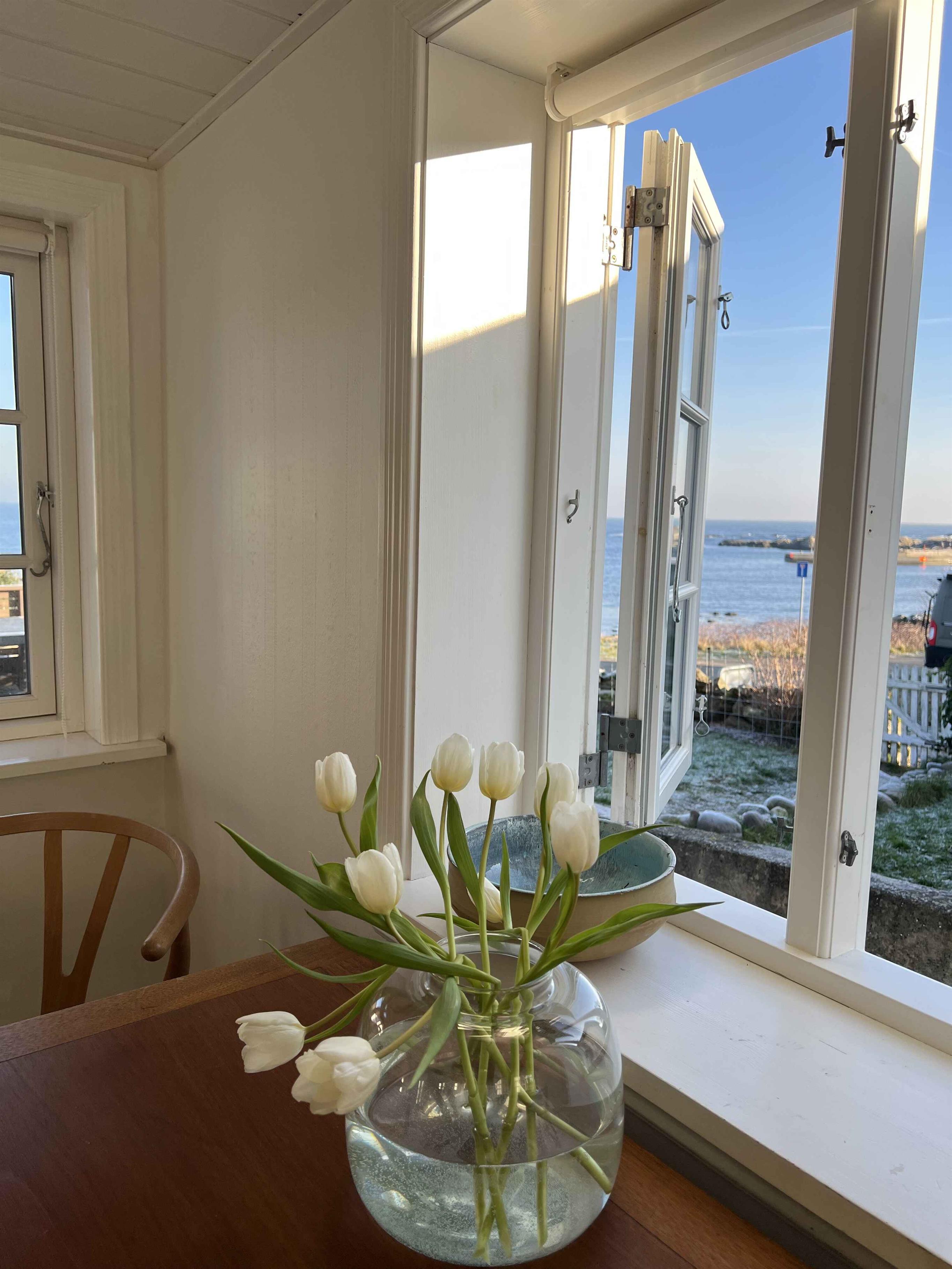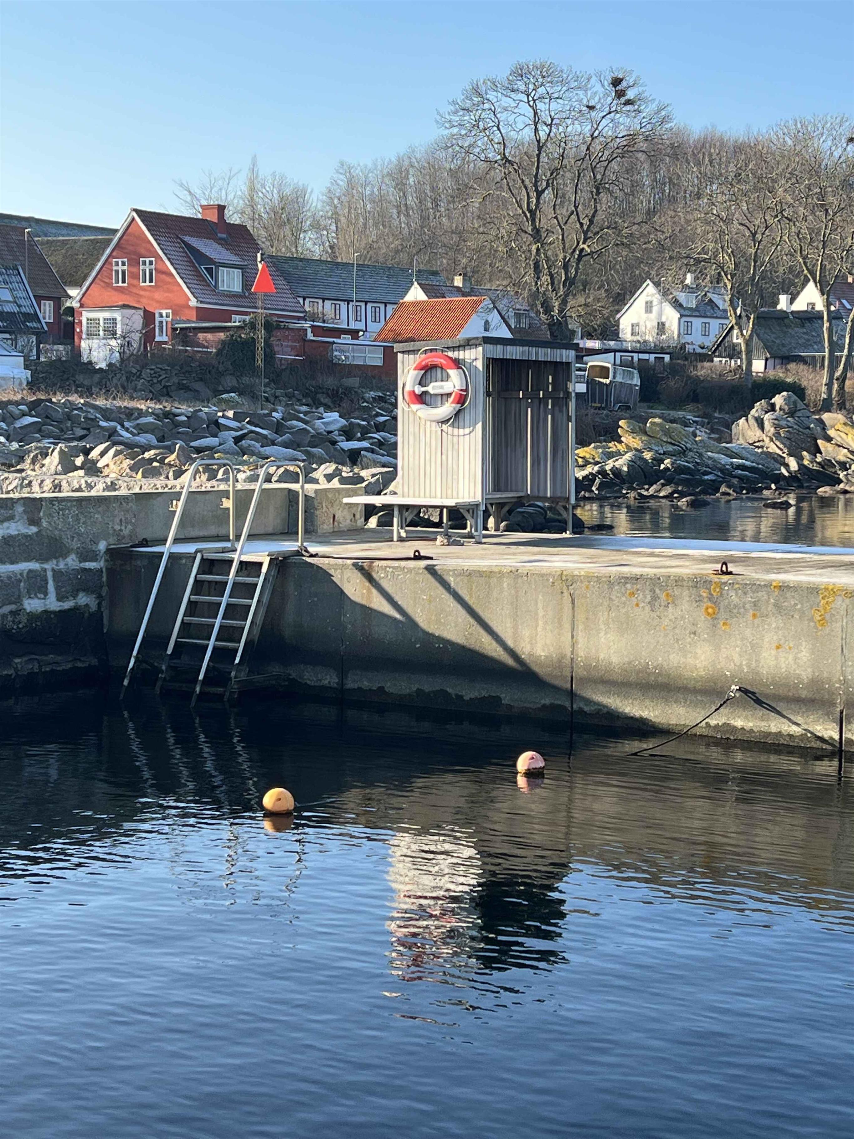 Charmantes Fischerhaus mit Meerblick und direktem Zugang zum Hafenbad in Listed, Bornholm.