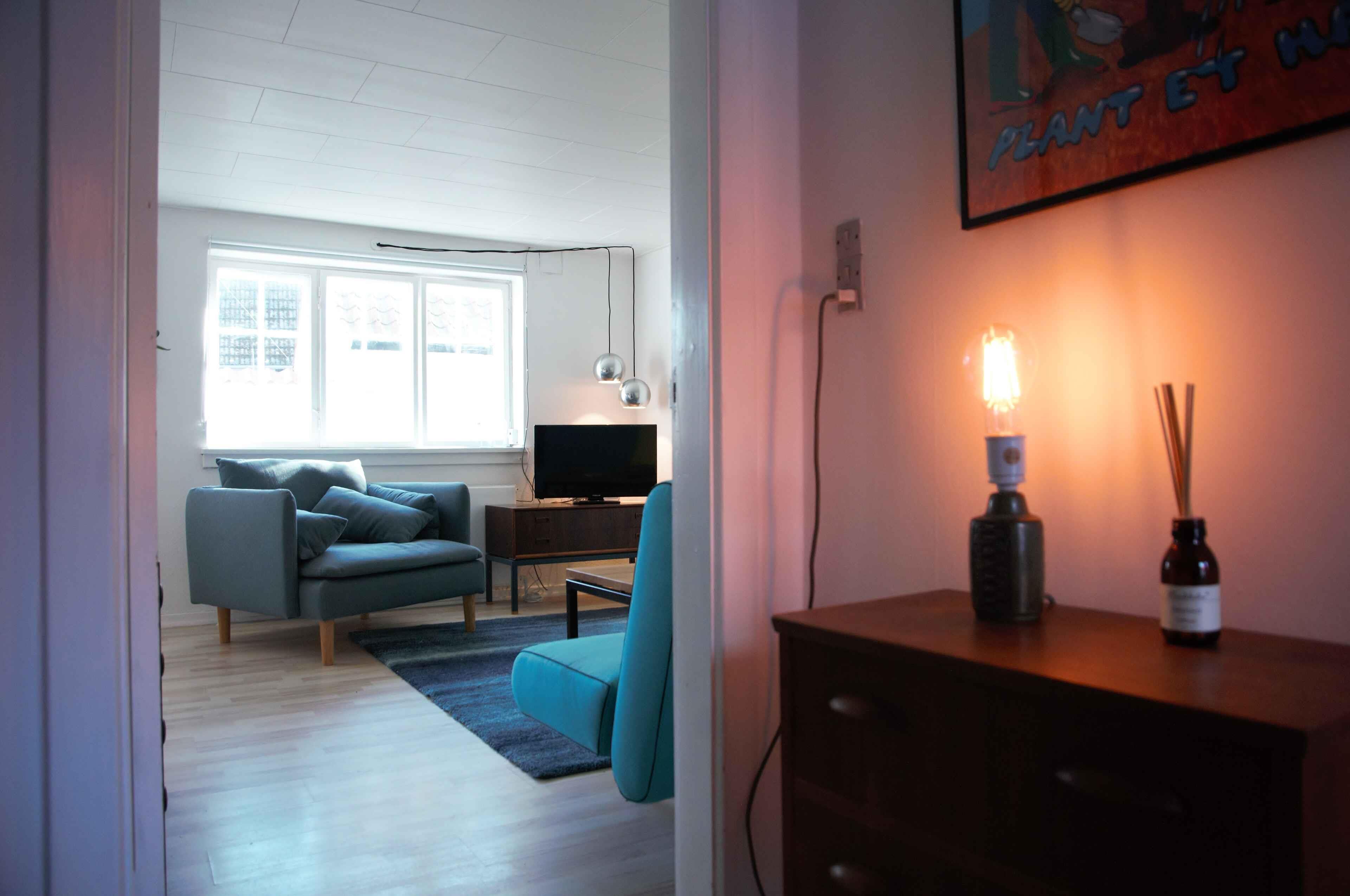 Gemütliche Wohnung in einem Innenhof zentral in Årsdale. Es gibt einen sonnigen Garten und einen Innenhof mit Tischen und Bänken. Die Wohnung liegt in der Nähe des Hafens und des Strandes, wo sich auch die Mikkeller-Bar und das lokale Høker befinden.