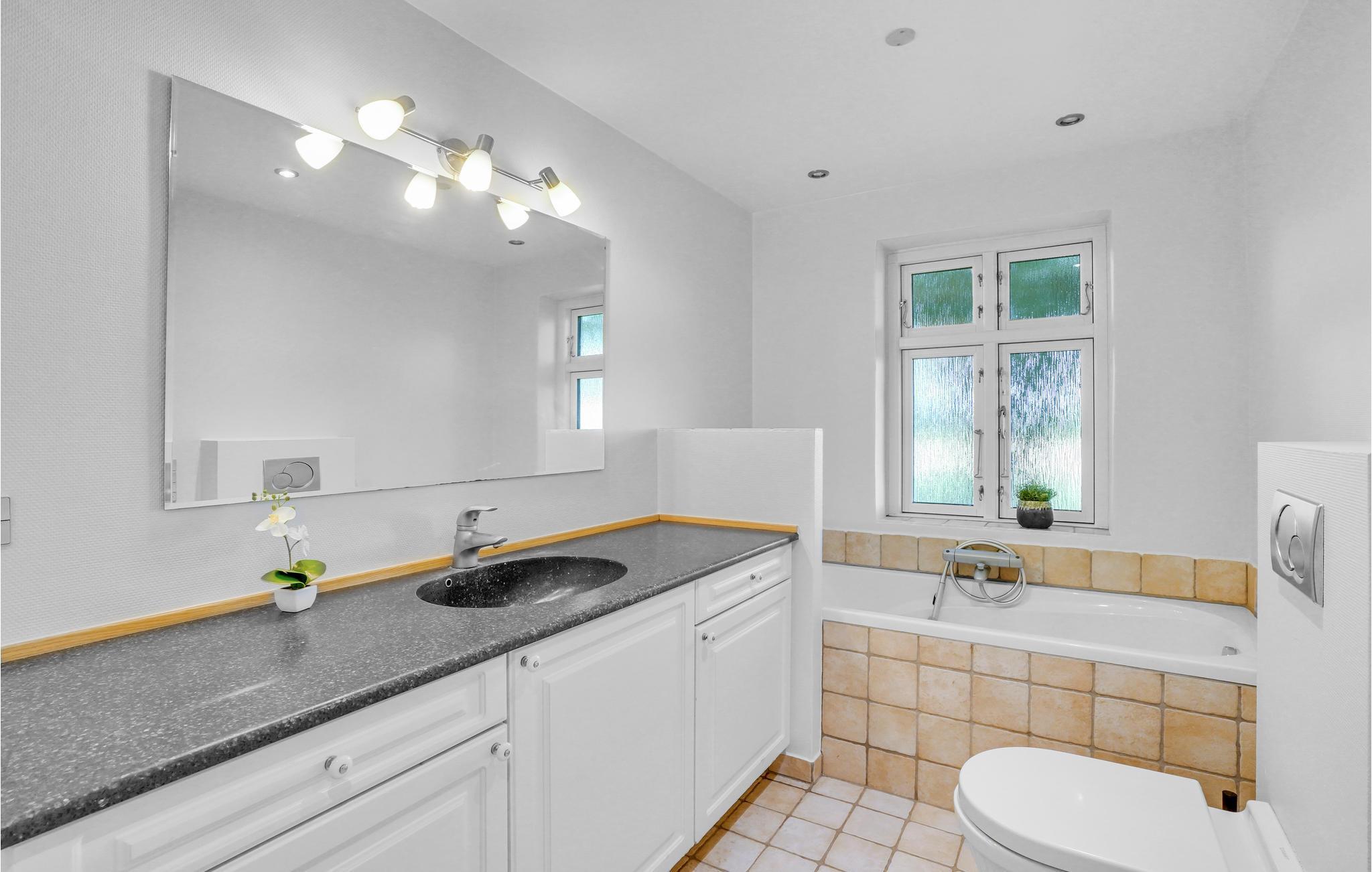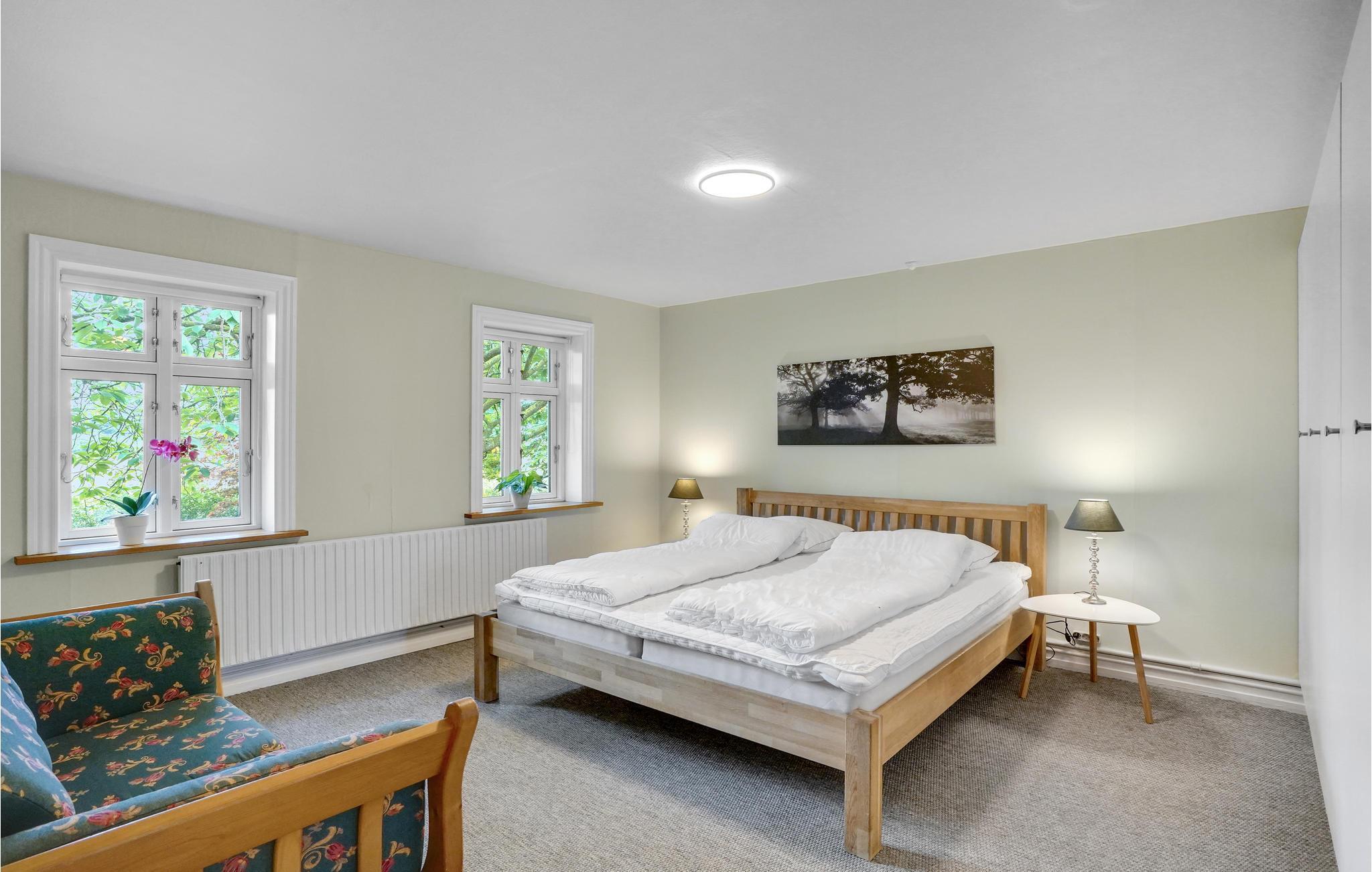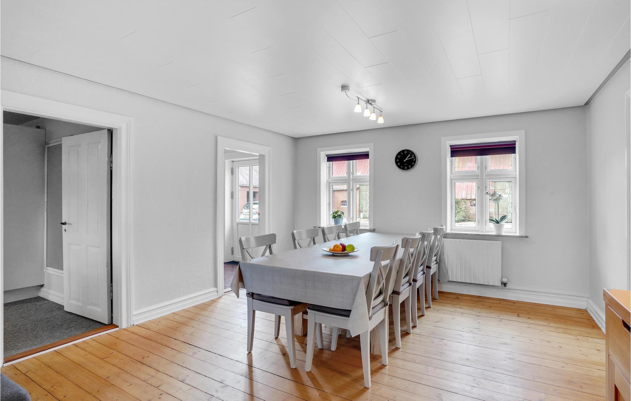 Auf einem ehemaligen Gehöft im Norden Jütlands befindet sich dieses Ferienhaus, das Platz für acht Personen und zwei Haustiere bietet. Die Wohnfläche verteilt sich auf vier Schlafzimmer, ein Badezimmer, einen Wohnraum und eine Küche.