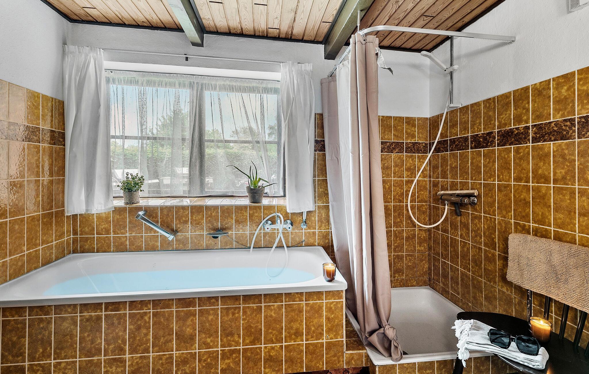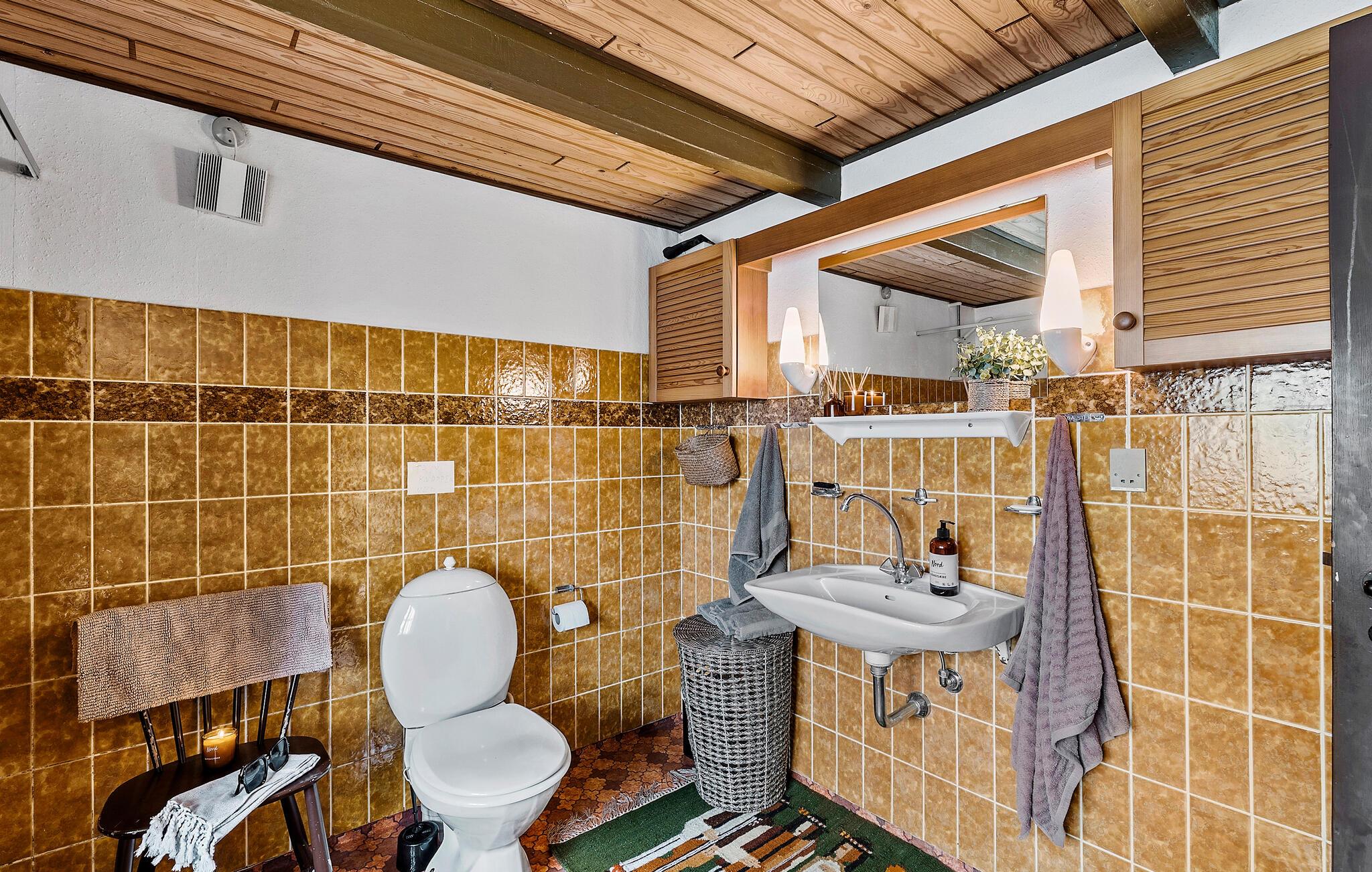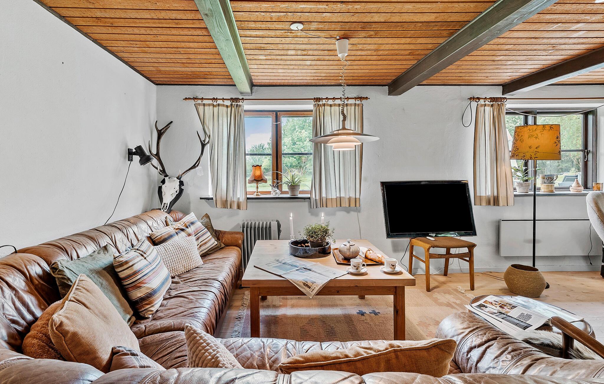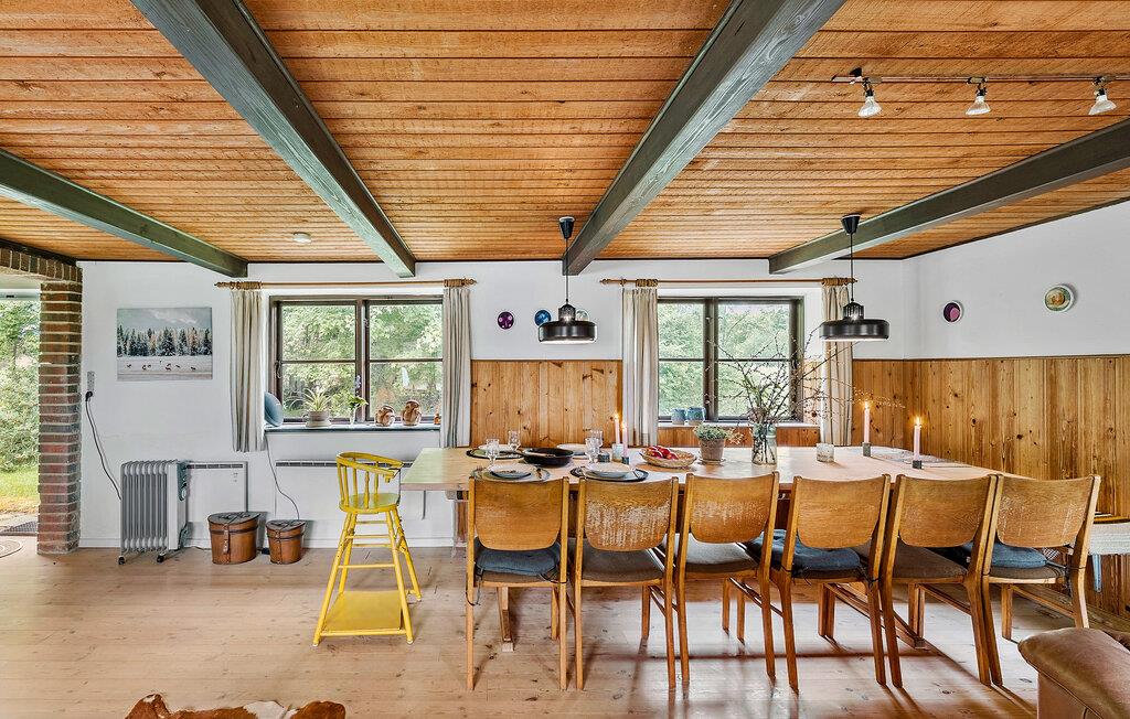 Mit Platz für zwei Familien oder eine größere Reisegruppe heißt Sie dieses großzügige Ferienhaus in der Nähe der dänischen Westküste etwas nördlich von Agger willkommen. Hier finden Sie Ruhe und Erholung in einer idyllischen Naturlandschaft. Beginnen Sie Ihren Tag mit einem entspannten Frühstück im gemütlichen Innenbereich, der durch seinen rustikalen Charme und das einladende Holzambiente überzeugt. Bequeme Sitzgelegenheiten laden zu gemütlichen Stunden mit spannenden Brettspielen, einem guten Buch oder einem unterhaltsamen Film ein. Der Kaminofen sorgt für eine behagliche Atmosphäre.