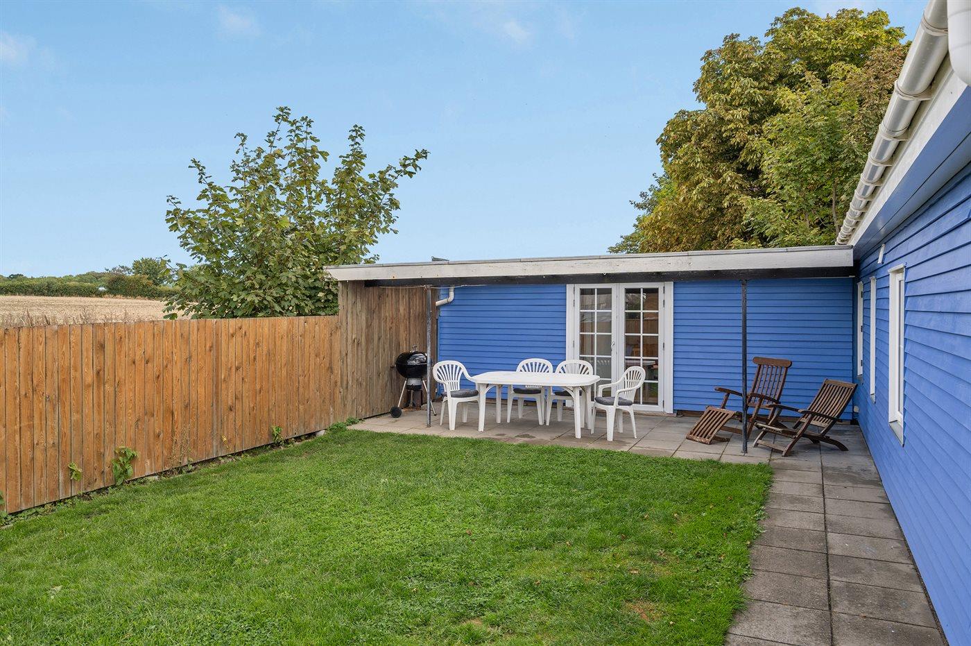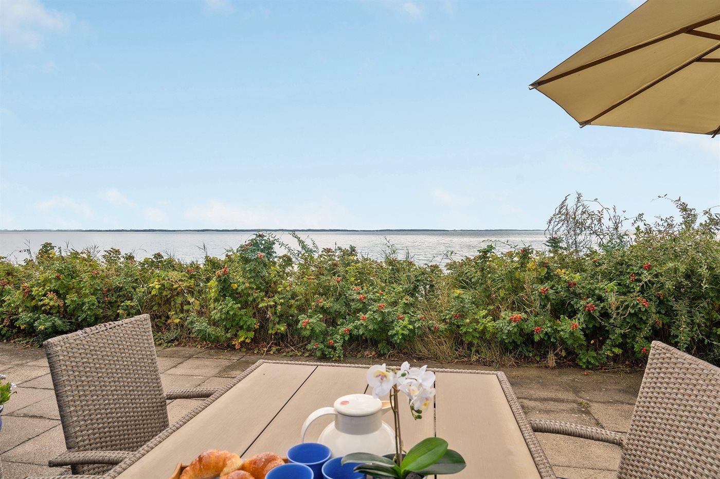 Von der schönen ungestörten Terrasse vor dem Haus haben Sie direkten Zugang zum Strand. Hinter dem Haus liegt ein Garten sowie eine überdachte Terrasse. Das Grundstück um das Haus ist geschlossen, sodass Kleinkinder und Hunde gefahrlos herumlaufen können. Neben dem Haus, direkt am Wasser, steht eine gemeinschaftlich nutzbare Grünfläche zur freien Nutzung zur Verfügung.