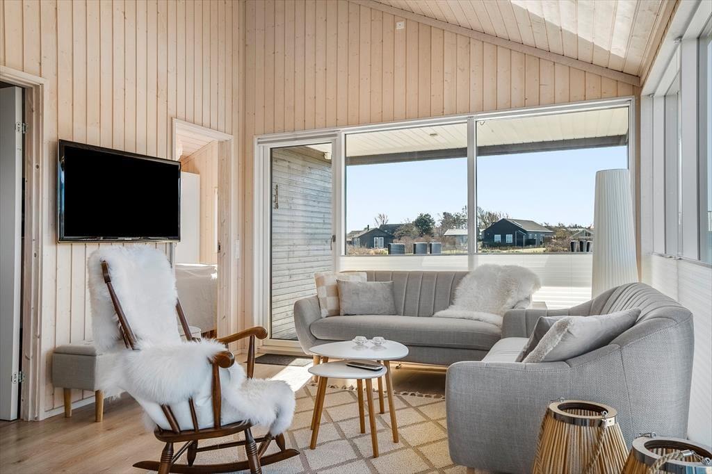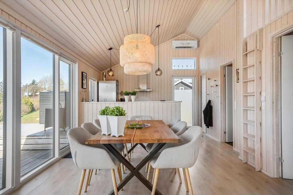 Vom Wohnzimmer aus haben Sie direkten Zugang zu einer teilweise überdachten Holzterrasse und können hier die warmen Tage und Abende genießen. Bei Einbruch der Dunkelheit können Sie sich unter den überdachten Teil der Terrasse zurückziehen und bei einem Glas Wein oder einer Tasse Kaffee die Stille und den Nachthimmel genießen. Im Garten gibt es für die Kinder ein Unterwassertrampolin. Der Urlaub hier lädt zu Strandtagen mit Bade- und Naturerlebnissen ein.