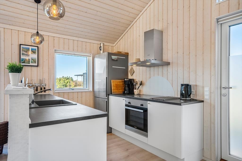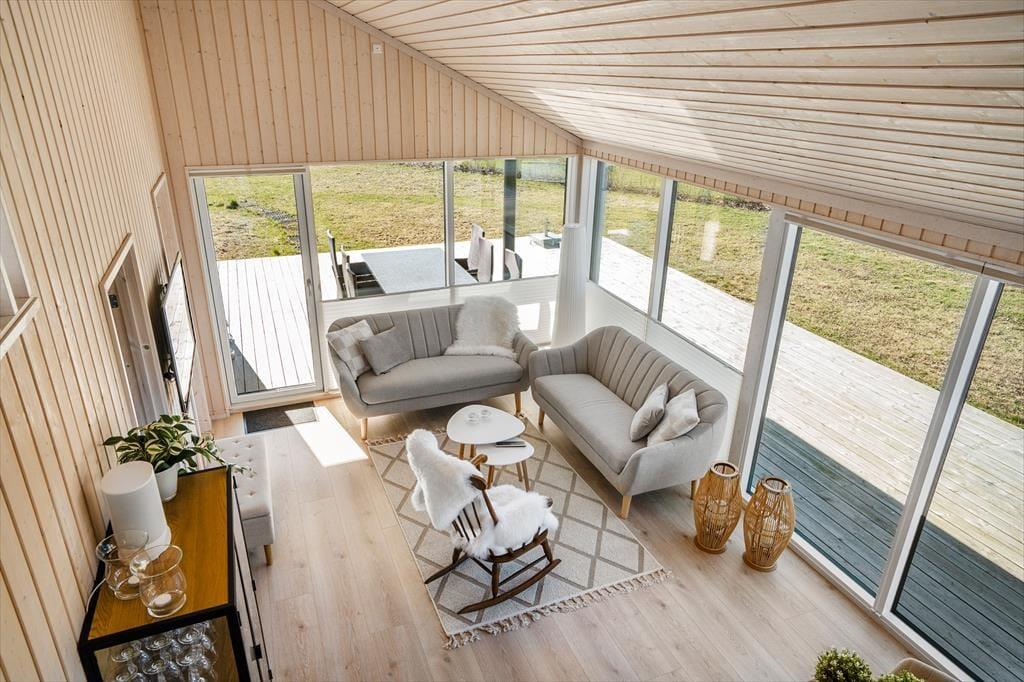 Hier betreten Sie ein neues Haus, in dem Küche und Wohnzimmer in einem sind. Hier können Sie gemeinsam kochen und die Kinder vielleicht malen oder am Esstisch spielen. Im Wohnzimmer können Sie auf den Sofas sitzen und Spaß haben, während Sie gleichzeitig die Erlebnisse des nächsten Tages planen. Es gibt Streaming-TV und WLAN für Ihren Teenager und das Haus verfügt über drei gute Schlafzimmer, eines mit einem Doppelbett, eines mit zwei Etagenbetten und eines mit zwei Einzelbetten. Hier ist also Platz für Sie alle und die Möglichkeit, sich zurückzuziehen und ein gutes Buch zu lesen oder ein Nickerchen zu machen. Das Haus verfügt über ein schönes Badezimmer mit Toilette, Waschbecken und Dusche, sowie eine Waschmaschine und nicht zuletzt eine Sauna.