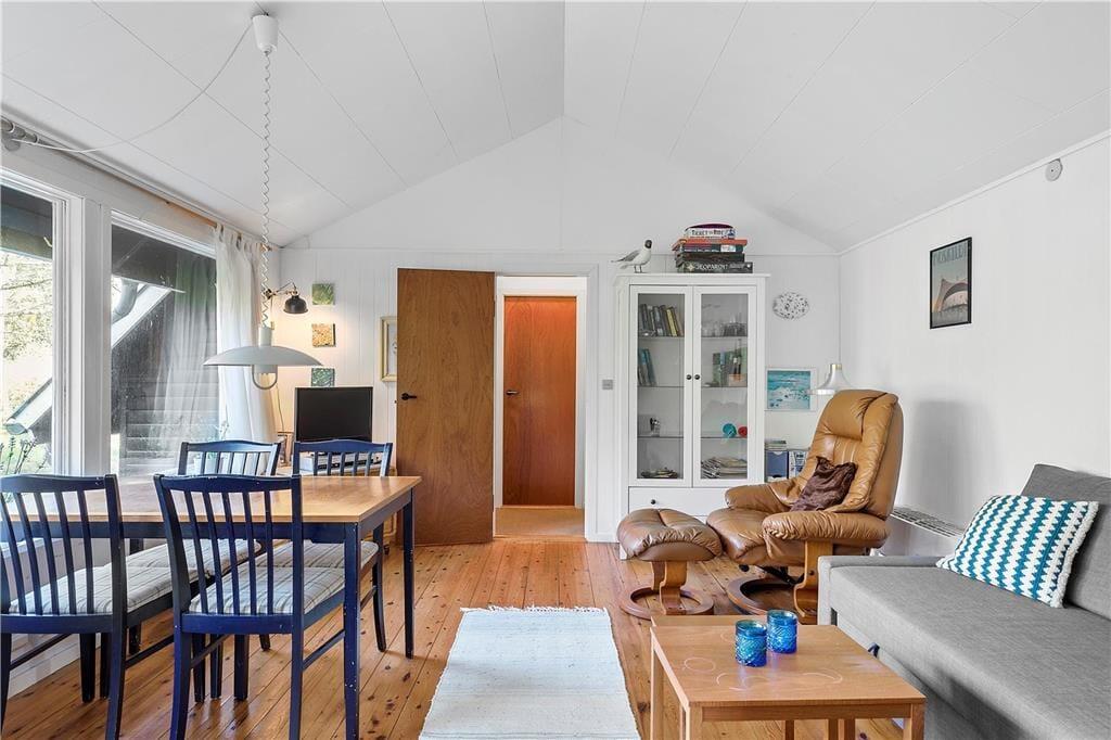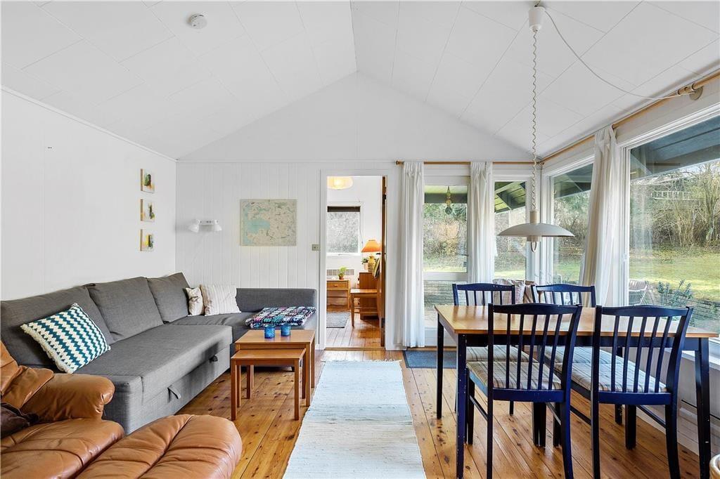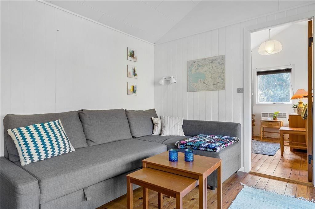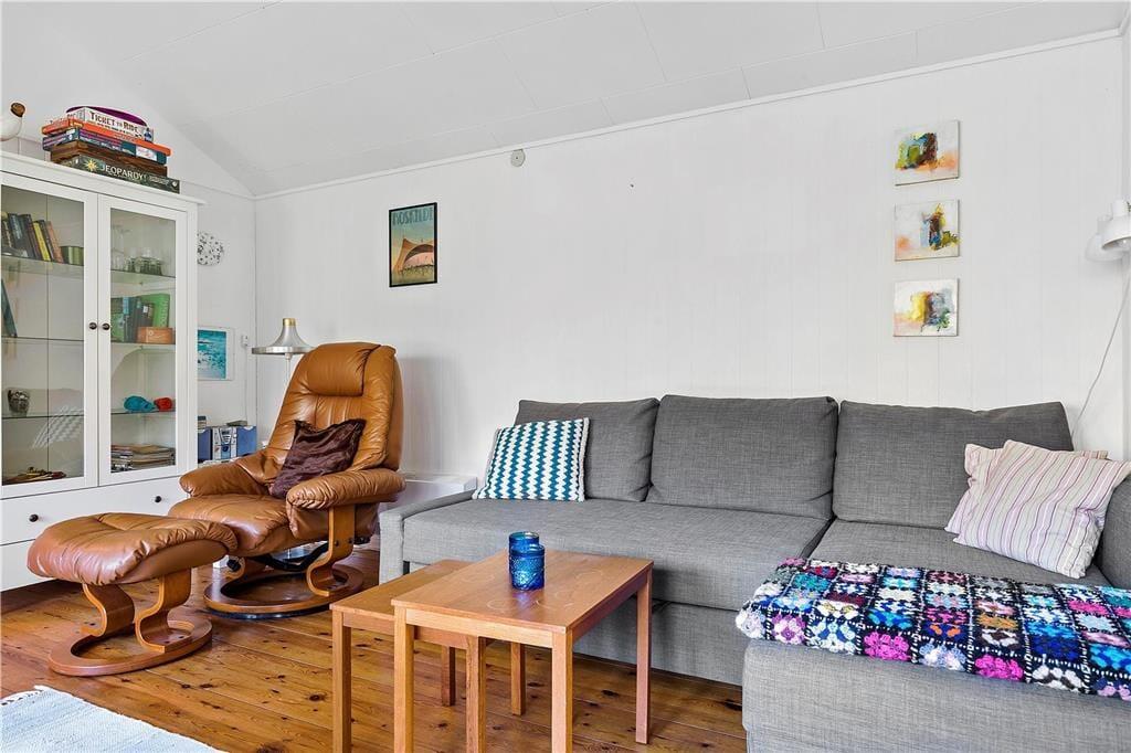Der gemütliche Wohnraum begrüßt Sie mit einer Sofaecke. Für Unterhaltung und Abwechslung ist Dank eines Fernsehers mit dänischen Sendern und Dank WiFi gesorgt. Vom Wohnraum aus genießen Sie direkten Zugang zur teilweise überdachten Terrasse mit Gartenmöbeln.