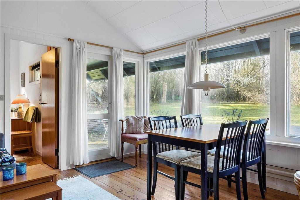 Dieses einfache, kleine, schwarz gestrichene Holzferienhaus mit weißen Fenstern befindet sich in Kostræde Banker bei Lundby. Sie wohnen nahe Næstved und Vordingborg, wo Sie interessante Geschäfte, Restaurants und Cafés erwarten. Besuchen Sie das Vordingborg Borgcenter und erleben Sie die spannende Ausstellung, die sich sowohl an Erwachsene als auch an Kinder richtet. Das Ferienhaus liegt nah am schönen Dybsø Fjord, einem der reinsten Fjorde Dänemarks, der mit seinen flachen Sandbänken ein wahres Eldorado für unter anderem zahllose Watt- und Entenvogelarten darstellt. Dieses außerordentlich interessante Gebiet lädt zu schönen Wanderungen und Spaziergängen ein. Zum Haus gehört ein Garten, der mit seinem gemütlichen, kleinen Spielhaus in den Bäumen Ihre Kinder begeistern wird sowie feuerplatz