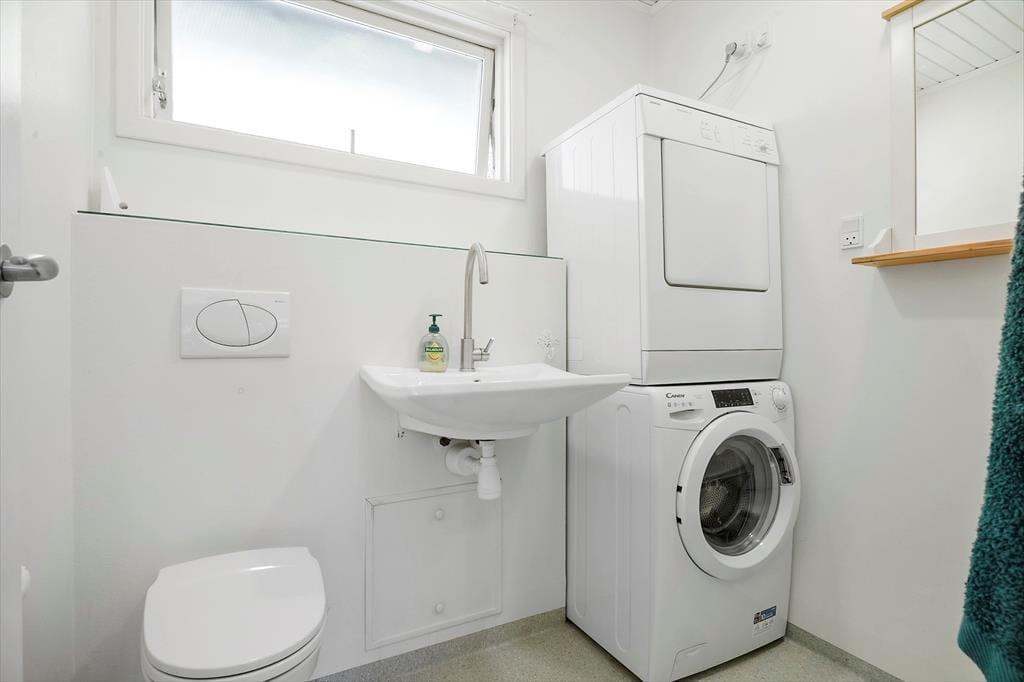 Das Badezimmer ist mit einem WC, einem Waschbecken und einer Dusche ausgestattet. Eine Waschmaschine und ein Wäschetrockner stehen Ihnen hier ebenfalls zur Verfügung.