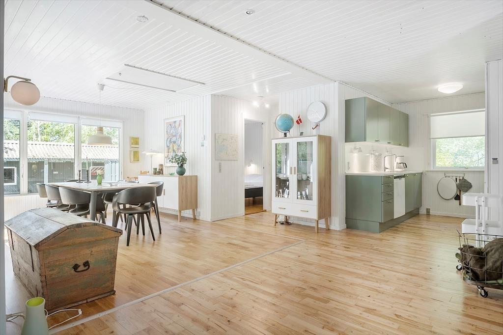 Das Haus begrüßt Sie mit einem gemütlichen Wohnraum, der ansprechend möbliert ist und über einen TV mit dänischen Sendern und über eine Internetverbindung verfügt. Vom Wohnraum genießen Sie direkten Zugang zur möblierten Terrasse.