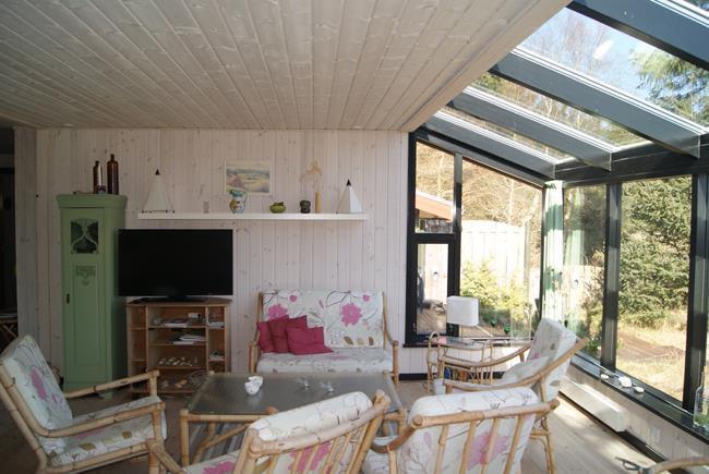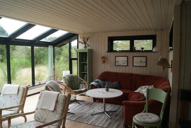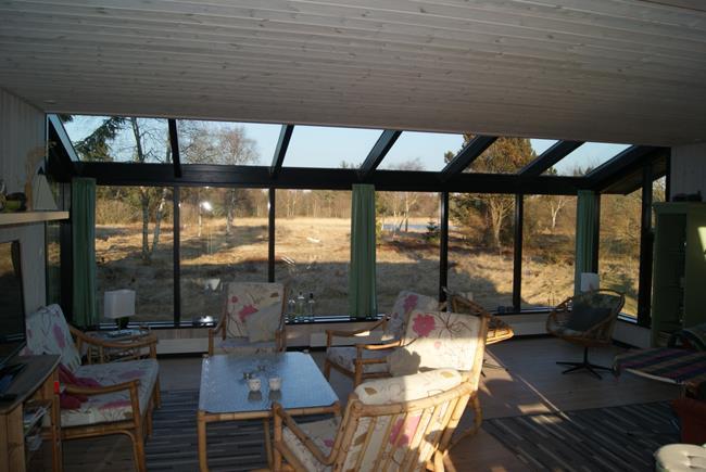 Der er flere terrasser omkring huset, som giver rig mulighed for både morgrnsol, middagssol og aftensol. Stuen har et smukt lysindfald fra panoramavinduer som vender mod Nord øst. Desuden lille skur, hvis i medbringer cykler. Der er let adgang til mange gå/mountainbike ruter i Svinkløv plantage og Gammel Hvarre.