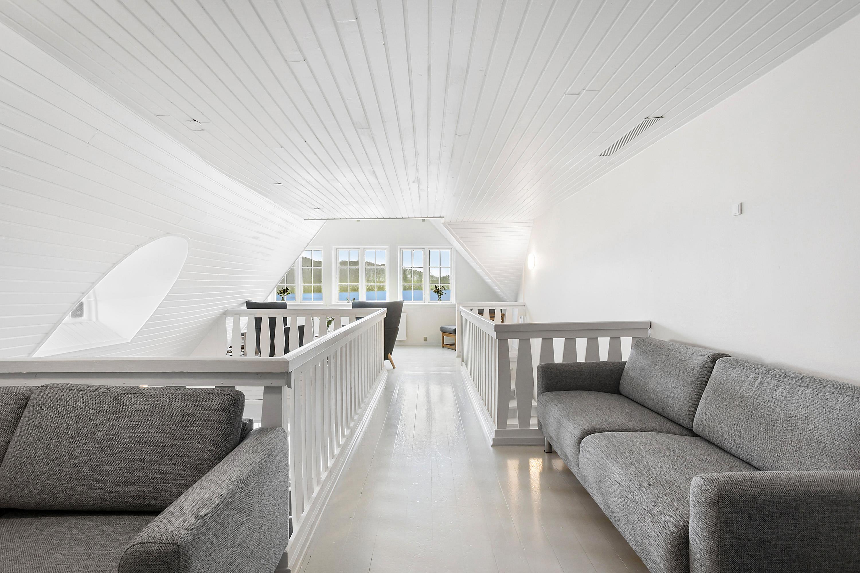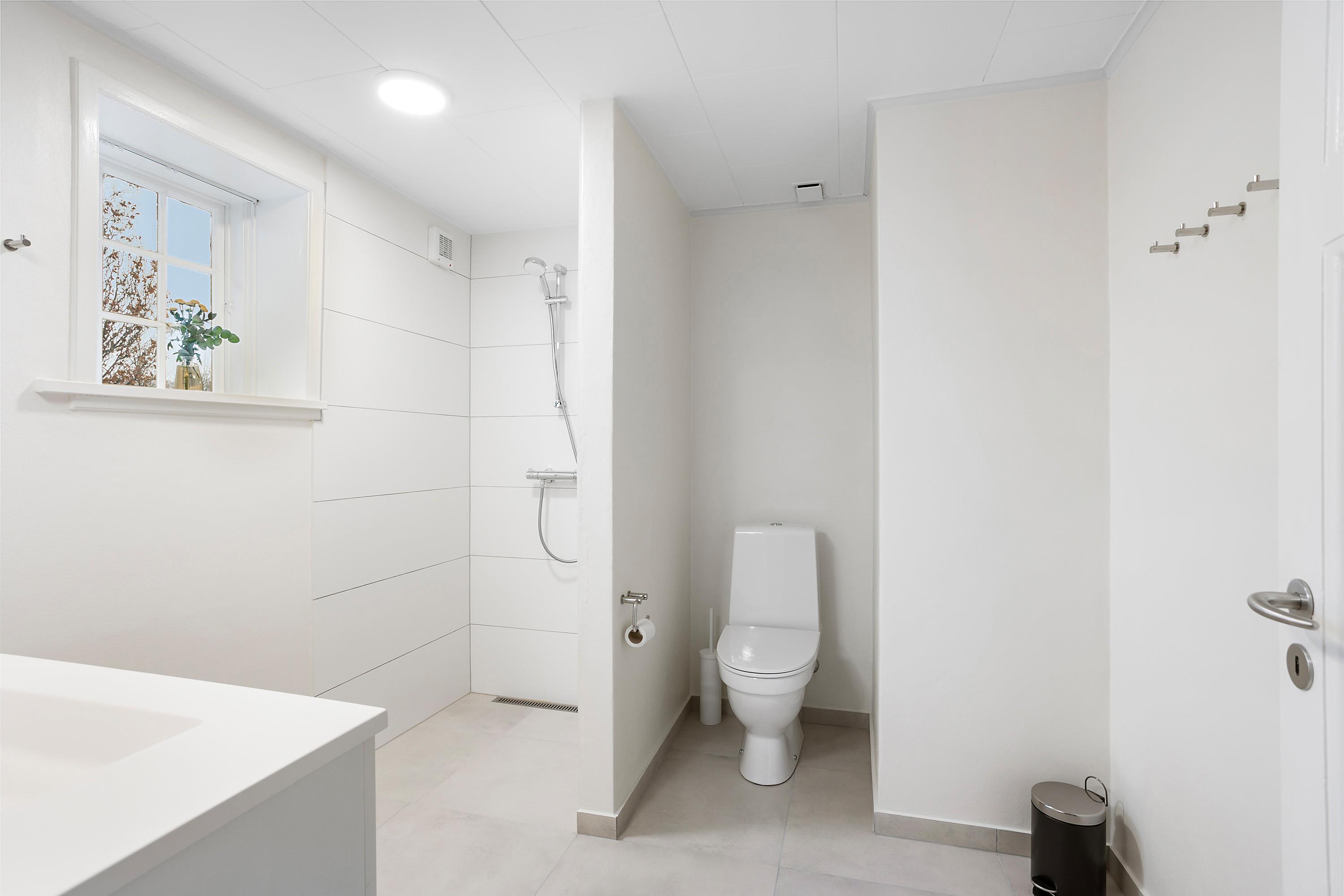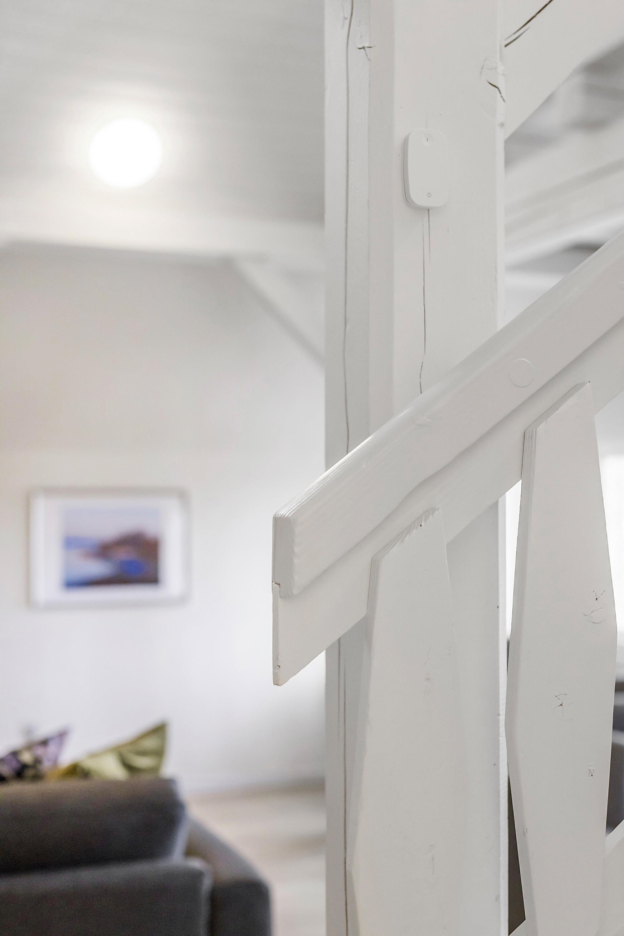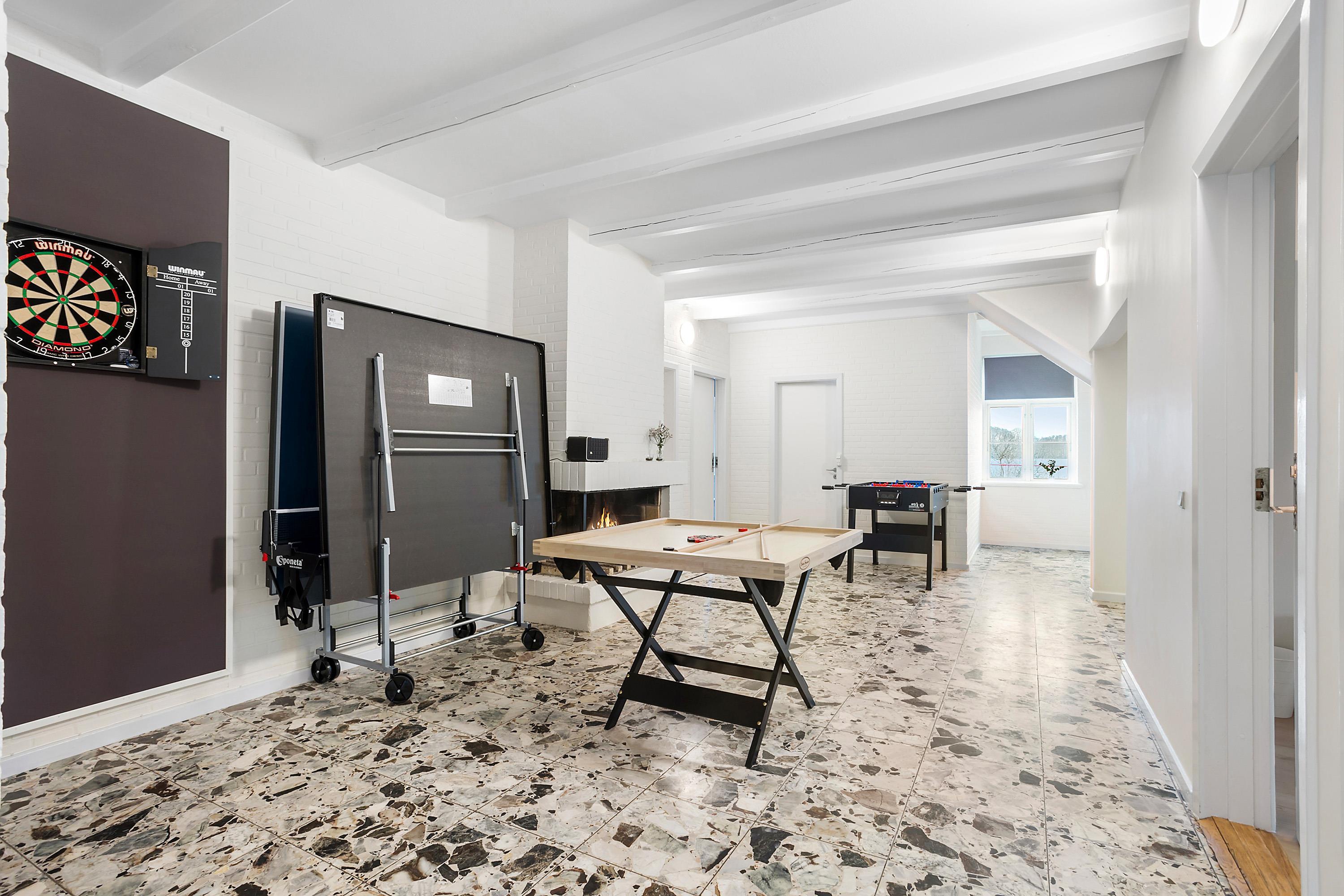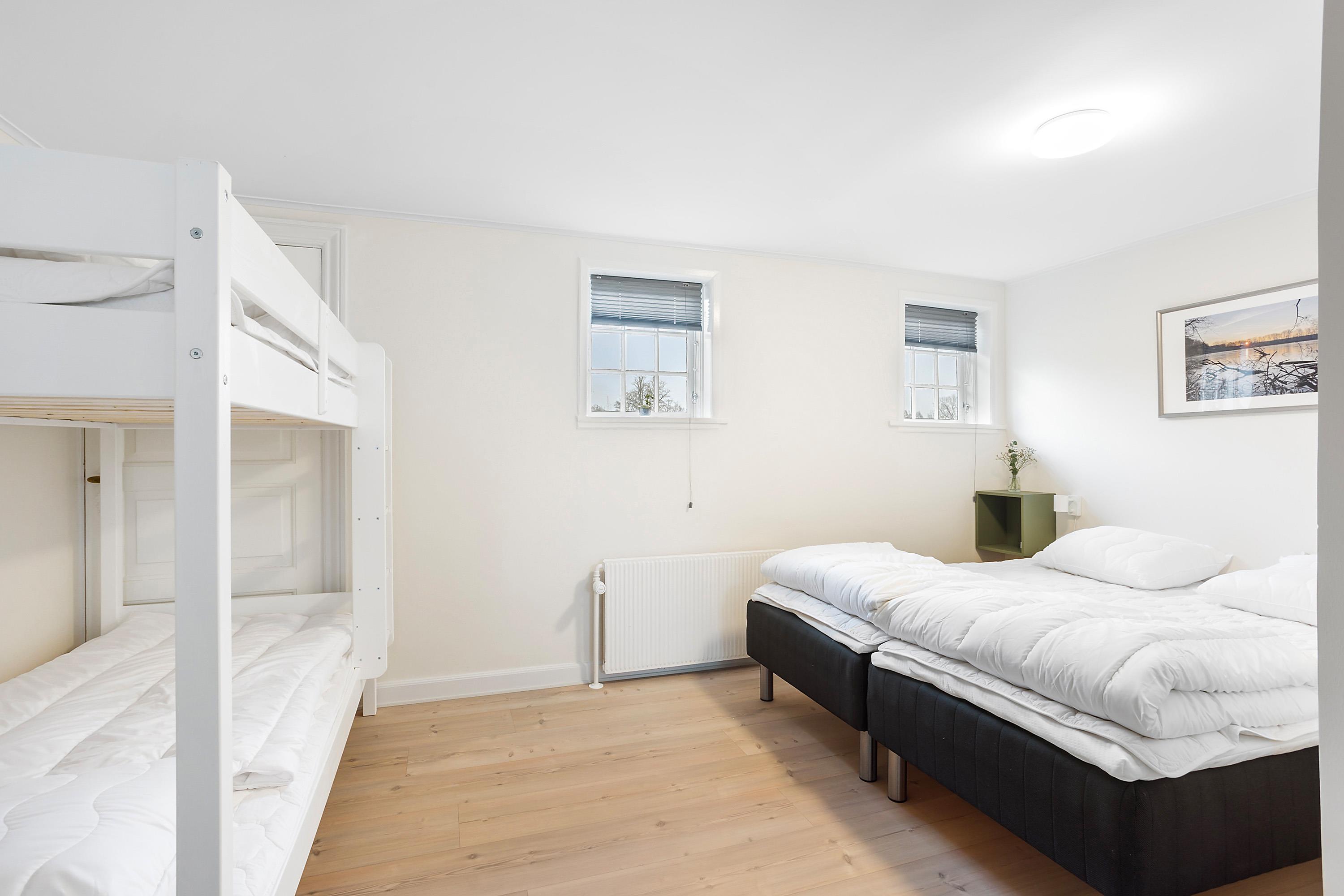 Das Haus besteht aus einer Eingangshalle, einer großen Küche mit Esszimmer und einem großen, charmanten Wohnzimmer mit sichtbaren Balken. Von hier gelangst du über eine offene Treppe in die Lounge-Ecke im ersten Stock mit Aussicht auf den Hvidkilde-See und in die TV-Hygge-Ecke, die ganz besonders von den jüngeren Familienmitgliedern genutzt wird. Zwei Toiletten sind direkt vom Wohnzimmer zu begehen.
