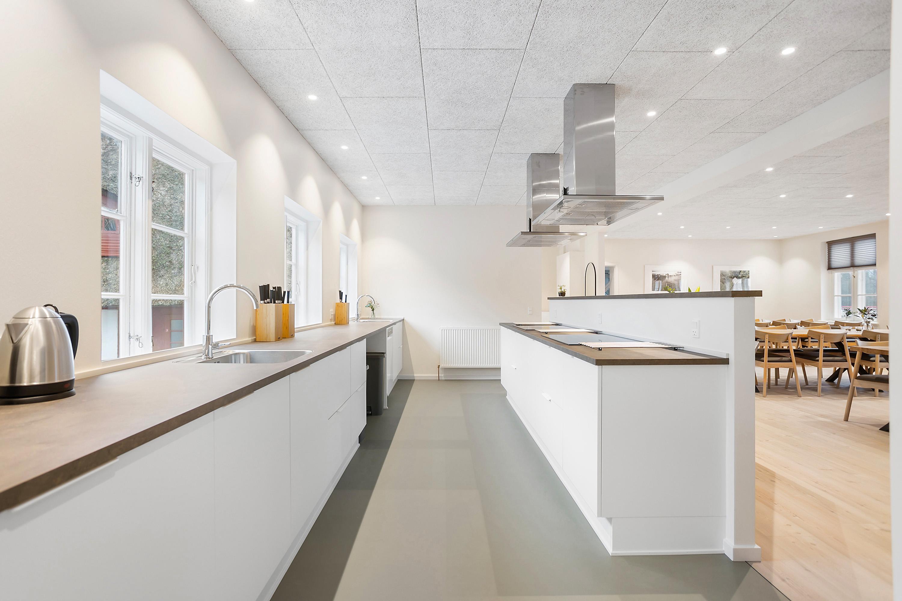 Bei der kompletten Renovierung wurden die Räumlichkeiten von Røde Mølle neu durchdacht und aufgeteilt. Hierdurch haben sie eine optimale Funktionalität für euch als Mieter erhalten, indem ansprechende Gemeinschaftsräume, eine moderne Küche und mehrere Orte geschaffen wurden, von denen aus ihr einen wunderbaren Blick auf die Natur genießen könnt.