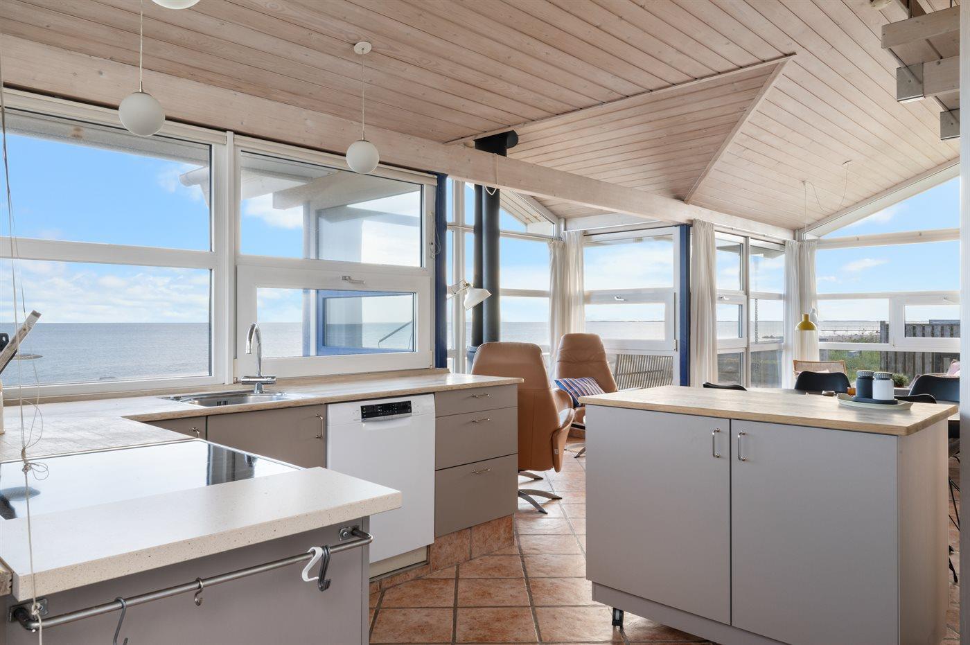 Vom Wohnzimmer kannst du direkt auf die Terrasse und weiter auf den Sandstrand gehen. Rund um das Haus gibt es eine schöne Terrasse, auf der du den ganzen Tag die Sonne genießen und abends den Sonnenuntergang beobachten kannst.