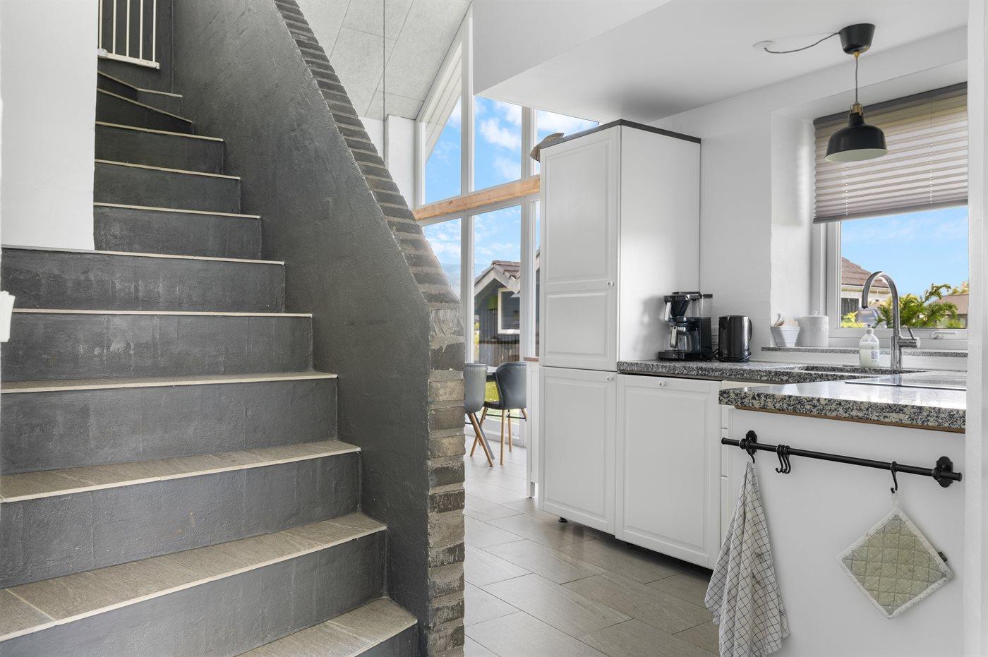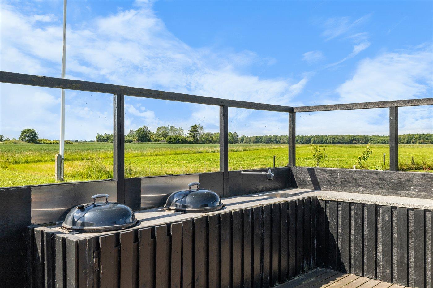 Zum Haus gehören mehrere Terrassenbereiche, und auf dem großen, in Richtung Südwesten ausgerichteten Bereich findest du eine Außenküche mit Grill u. a. m.