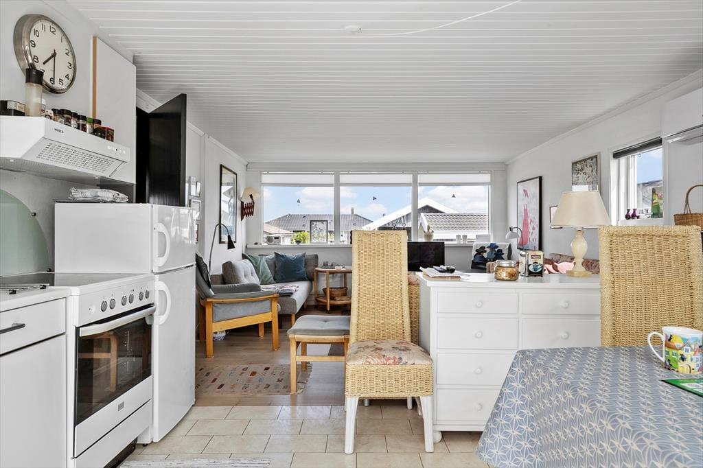 Beim Betreten des Ferienhauses empfängt Sie eine entspannte und charmante Atmosphäre, die sofort ein Gefühl von Zuhause vermittelt. Das Haus verfügt über ein gemütliches Wohnzimmer und eine helle Wohnküche in offener Verbindung – perfekt für gemeinsame Kochabende und geselliges Beisammensein. Vom Wohnzimmer aus gelangen Sie direkt auf die Terrasse, die zum Draußensitzen und Genießen einlädt. Eine komfortable Schlafcouch im Wohnzimmer bietet zusätzliche Schlafplätze, während das separate Schlafzimmer mit Doppelbett für erholsamen Schlaf sorgt. Das funktionale Badezimmer ist mit Dusche ausgestattet und bietet alles Nötige für den täglichen Komfort. Ein besonderes Highlight ist das separate, gemütliche Gästehaus mit zwei weiteren Schlafplätzen – ideal für Teenager oder Großeltern, die etwas mehr Privatsphäre wünschen. Das Ferienhaus ist einfach, aber äußerst funktional und eignet sich sowohl für Paare, kleine Familien als auch befreundete Paare, die eine ruhige Auszeit am Meer suchen.