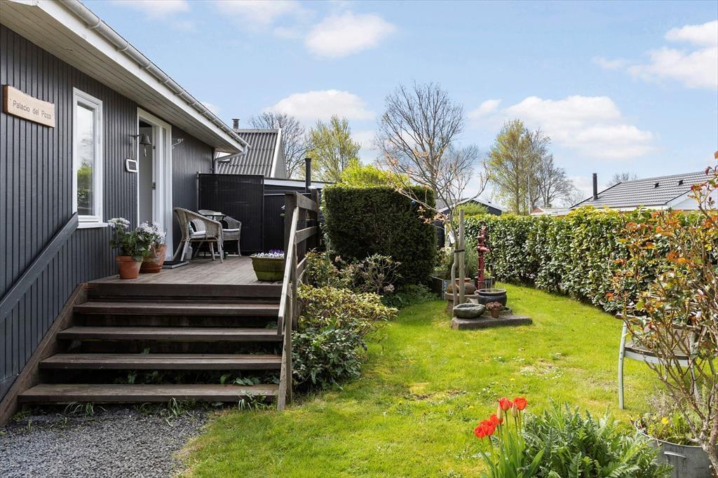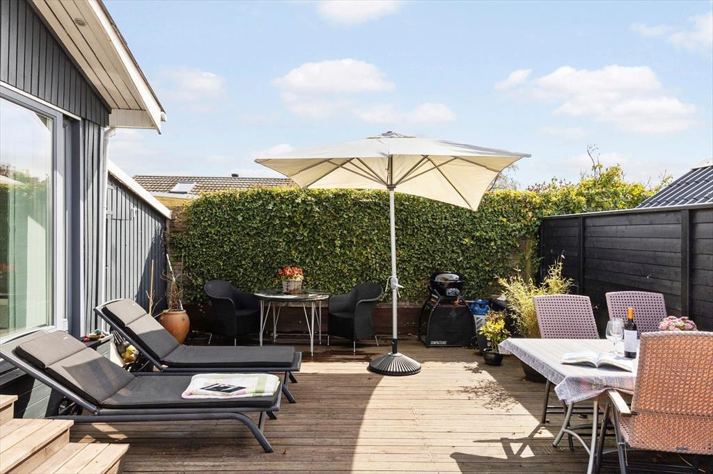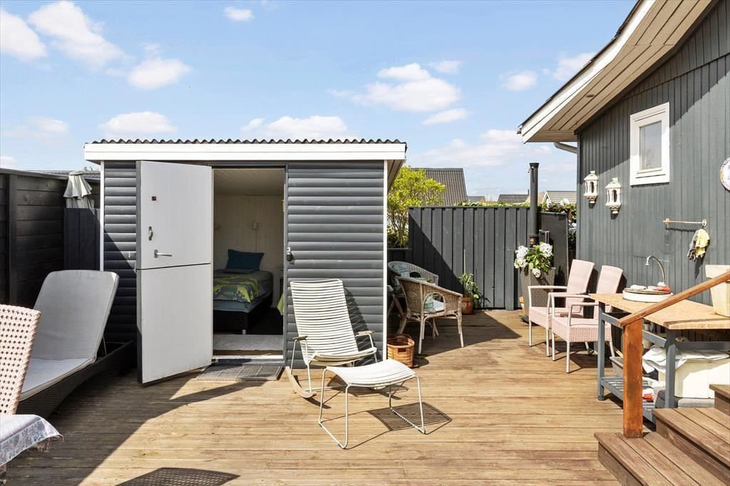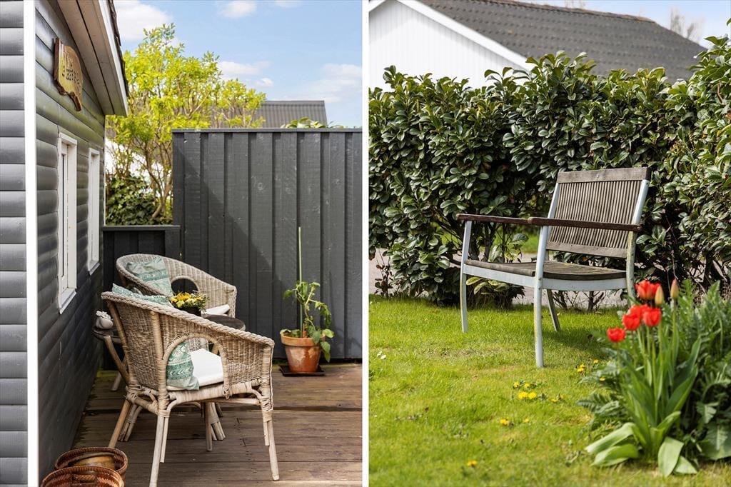 Der Außenbereich des Ferienhauses ist ganz auf Erholung und gemeinsames Beisammensein ausgelegt. Der geschlossene Innenhof ist eine kleine Oase, in der Sie vollkommen ungestört entspannen können – ob bei einer Tasse Kaffee am Morgen, einem Grillabend oder mit einem guten Buch im Schatten. Der Garten ist übersichtlich und pflegeleicht, und es gibt viele gemütliche Ecken, in denen man die Sonne genießen kann. Die große Terrasse mit direktem Zugang vom Wohnzimmer ist der perfekte Treffpunkt für Mahlzeiten im Freien mit Familie oder Freunden. Das absolute Highlight bleibt aber die fantastische Lage – nur wenige Schritte von einem der besten und kinderfreundlichsten Badestrände Fünens entfernt. Hier können Kinder sicher im flachen Wasser spielen, während die Erwachsenen die Sonne genießen, schwimmen gehen oder einen Spaziergang entlang der Küste machen. So fühlt sich Urlaub richtig an – mit Sand zwischen den Zehen und der Ruhe der Natur im Herzen.