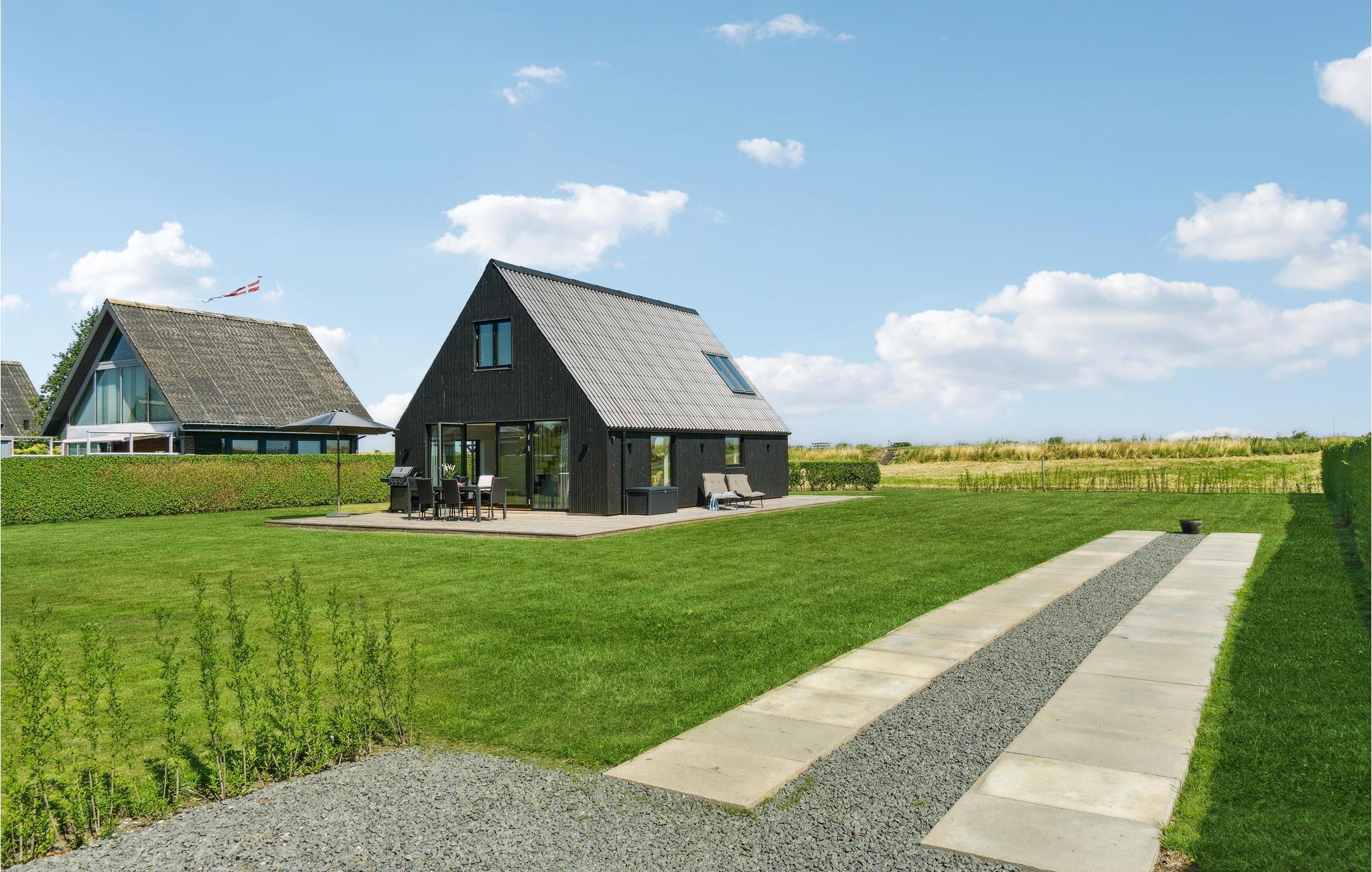 Modernes Ferienhaus in erster Reihe am Tørresø Strand mit Meerblick und großem Garten für erholsame Urlaubstage.