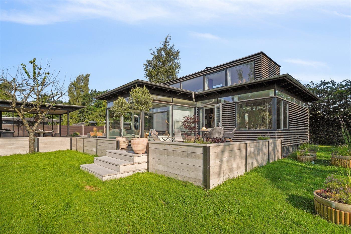 Erleben Sie ein architektonisch gestaltetes Sommerhaus mit atemberaubendem Fjordblick und luxuriösem Wildnisbad in Tørslev Hage, Dänemark.