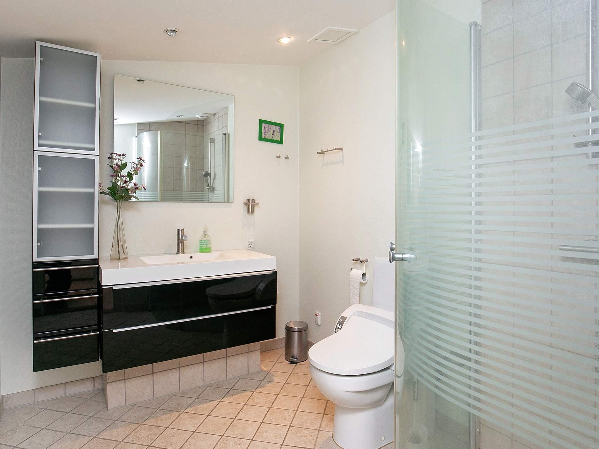 Bad: WC, Waschb., Dusche, Fußbodenheiz.