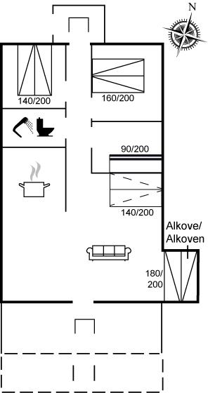 Übrigens: Es stehen mehrere Schlafmöglichkeiten zur Verfügung. Außer den drei Schlafzimmern stehen nämlich auch ein Schlafsofa und ein Alkoven, die sich im Wohnzimmer befinden, zur Verfügung. Es dürfen jedoch nicht mehr als 6 Personen + 1 Kind (0-3 Jahre) übernachten, da das Haus nur an diese Anzahl Personen vermietet wird.