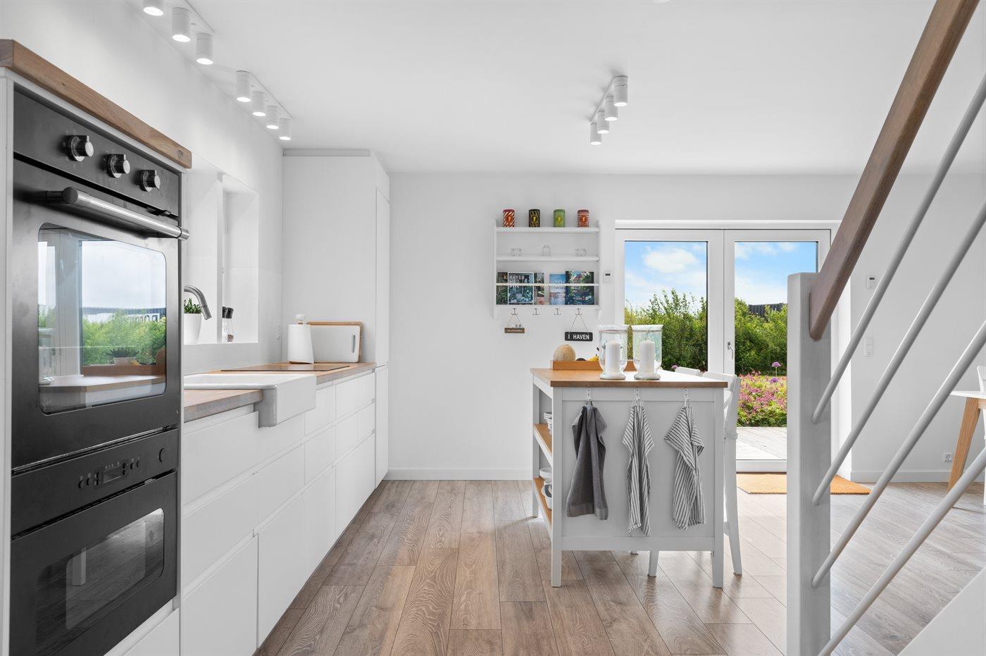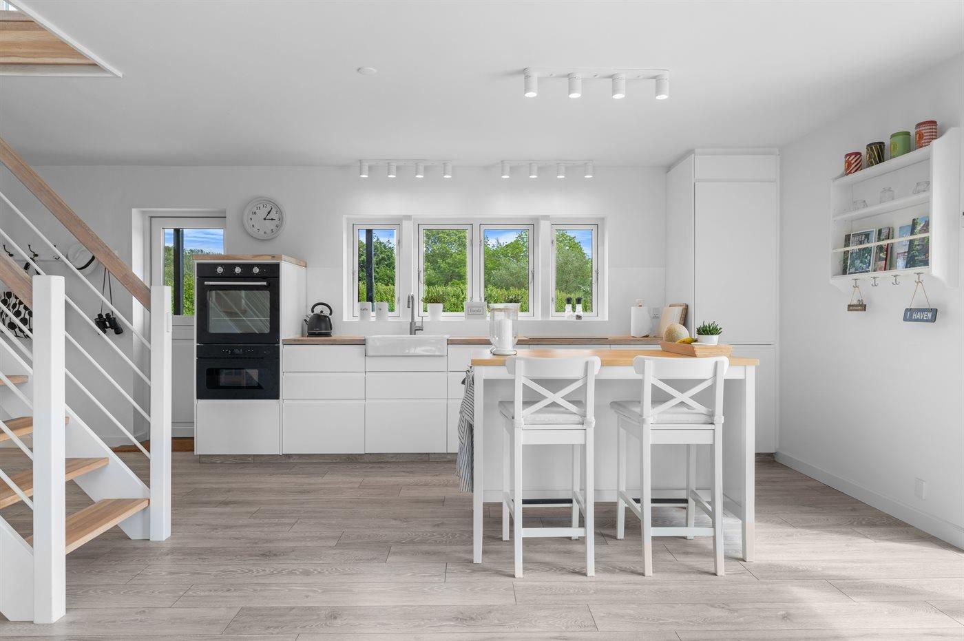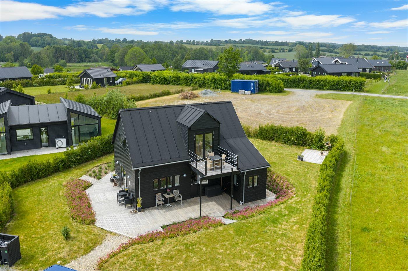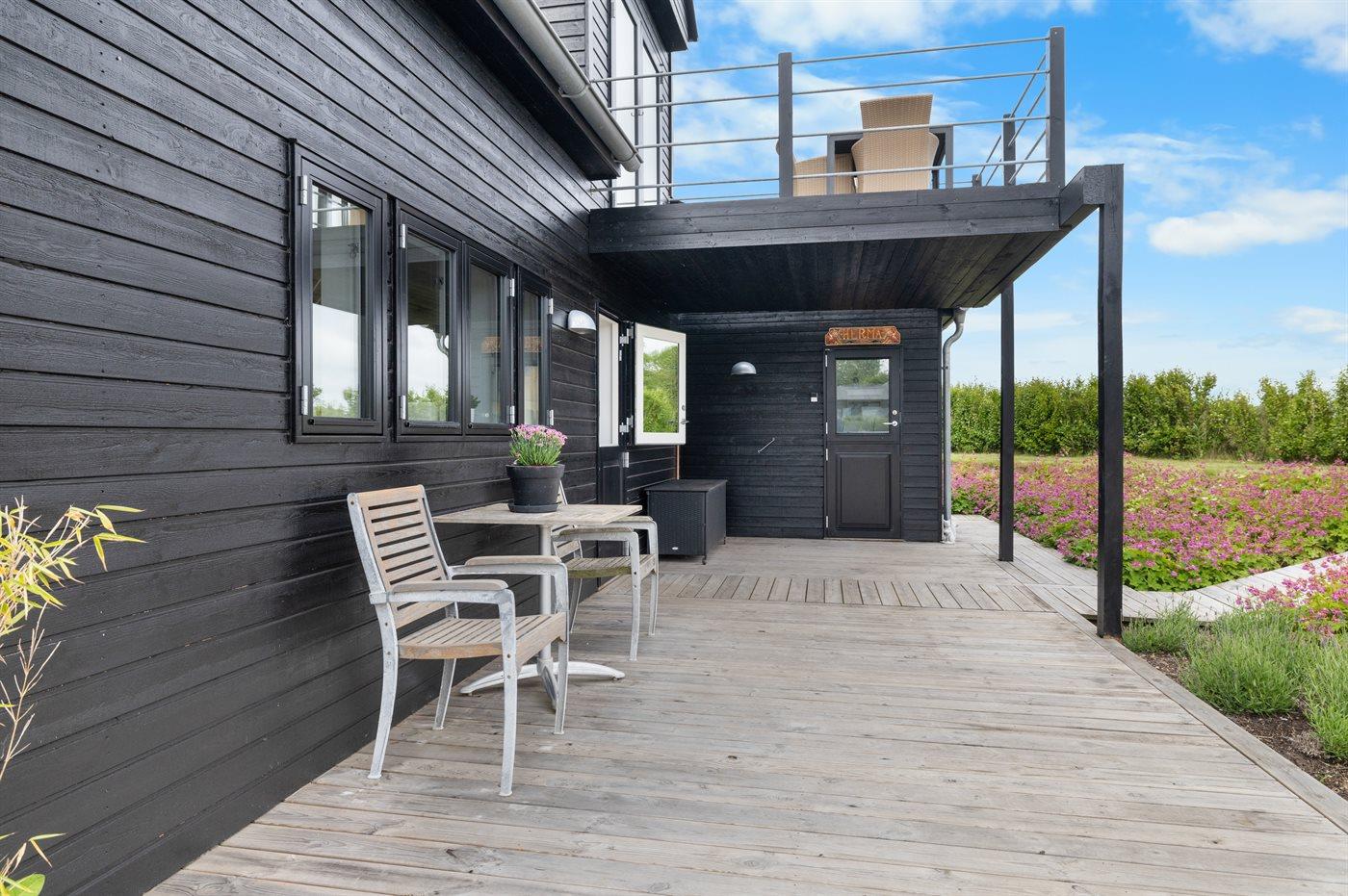 Ein schönes, 2-stöckiges und neu erbautes Ferienhaus mit mehreren guten Terrassen, die sich rund um das Haus verteilen. Das Haus ist hell und geschmackvoll eingerichtet, und vom Obergeschoss sowie vom Balkon aus hast du einen herrlichen Blick über die Umgebung und das Wasser.