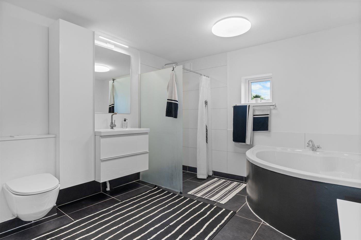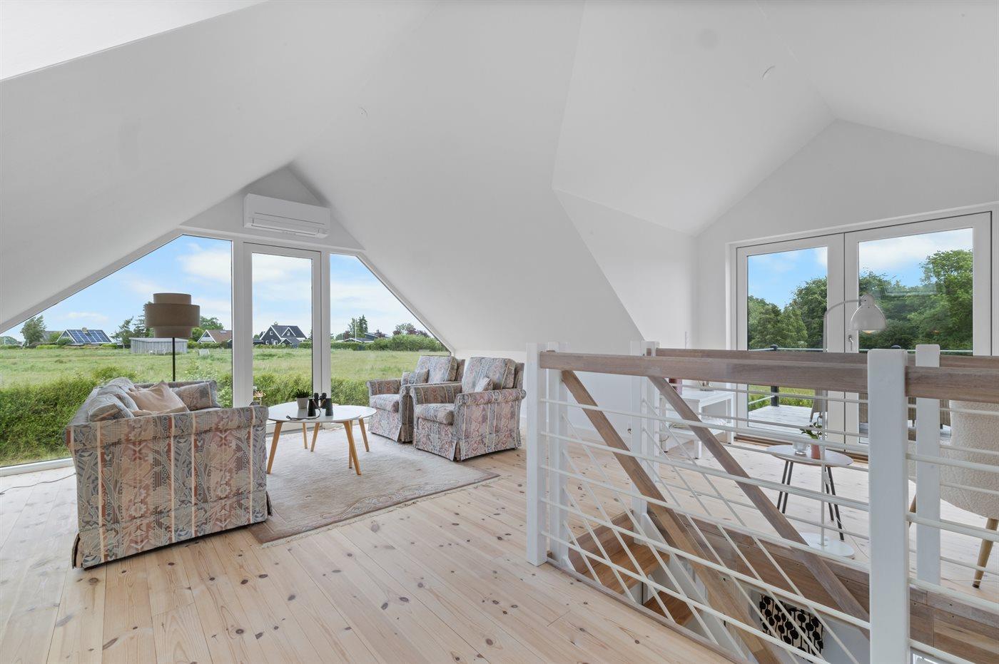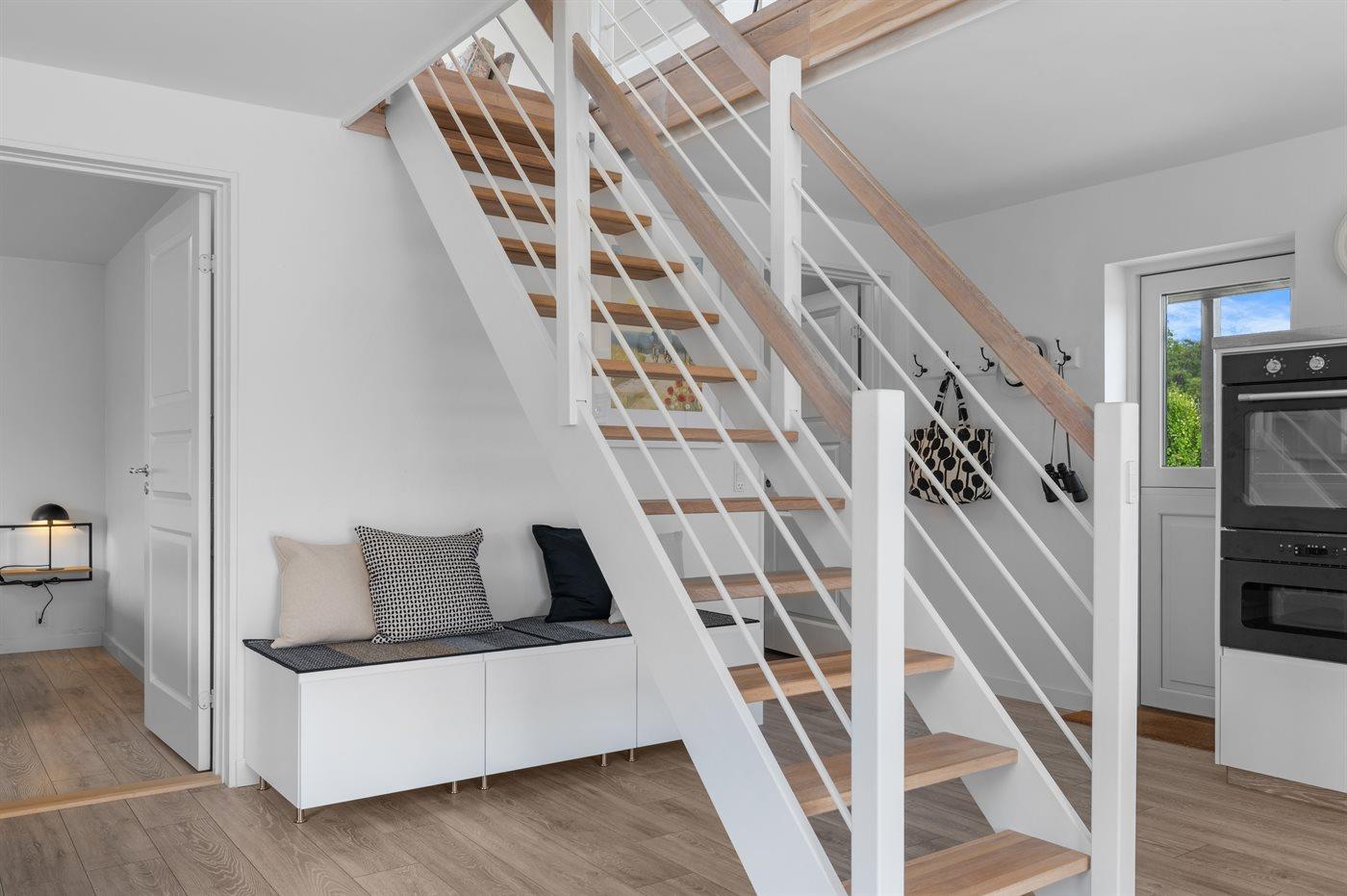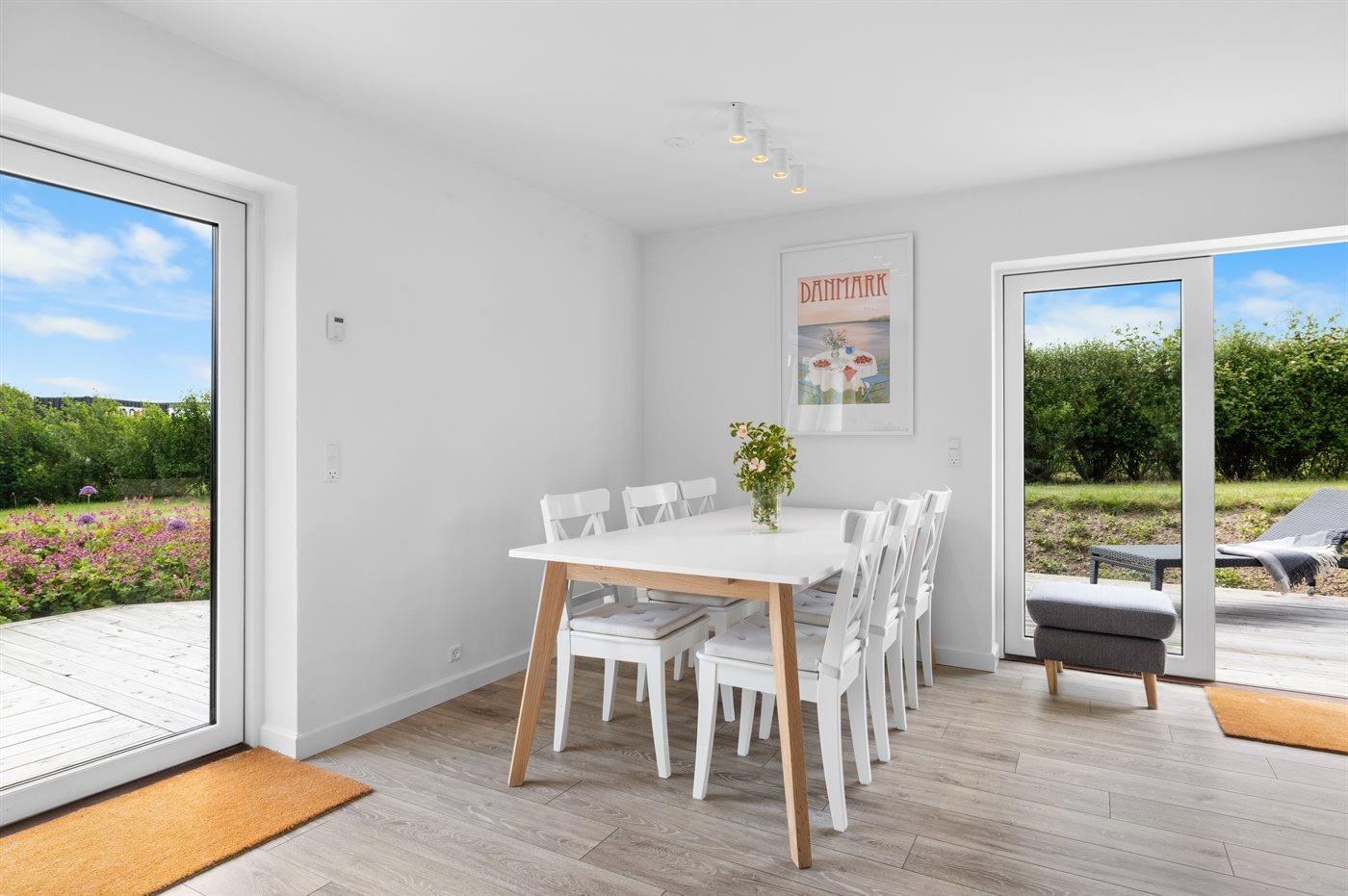 Ein schönes, 2-stöckiges und neu erbautes Ferienhaus mit mehreren guten Terrassen, die sich rund um das Haus verteilen. Das Haus ist hell und geschmackvoll eingerichtet, und vom Obergeschoss sowie vom Balkon aus hast du einen herrlichen Blick über die Umgebung und das Wasser.