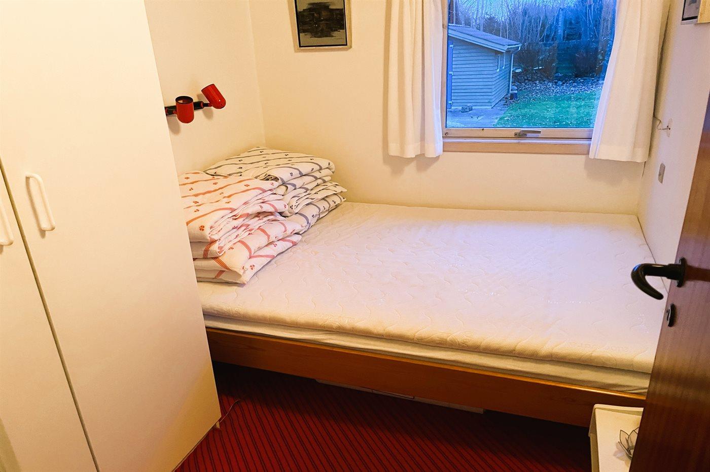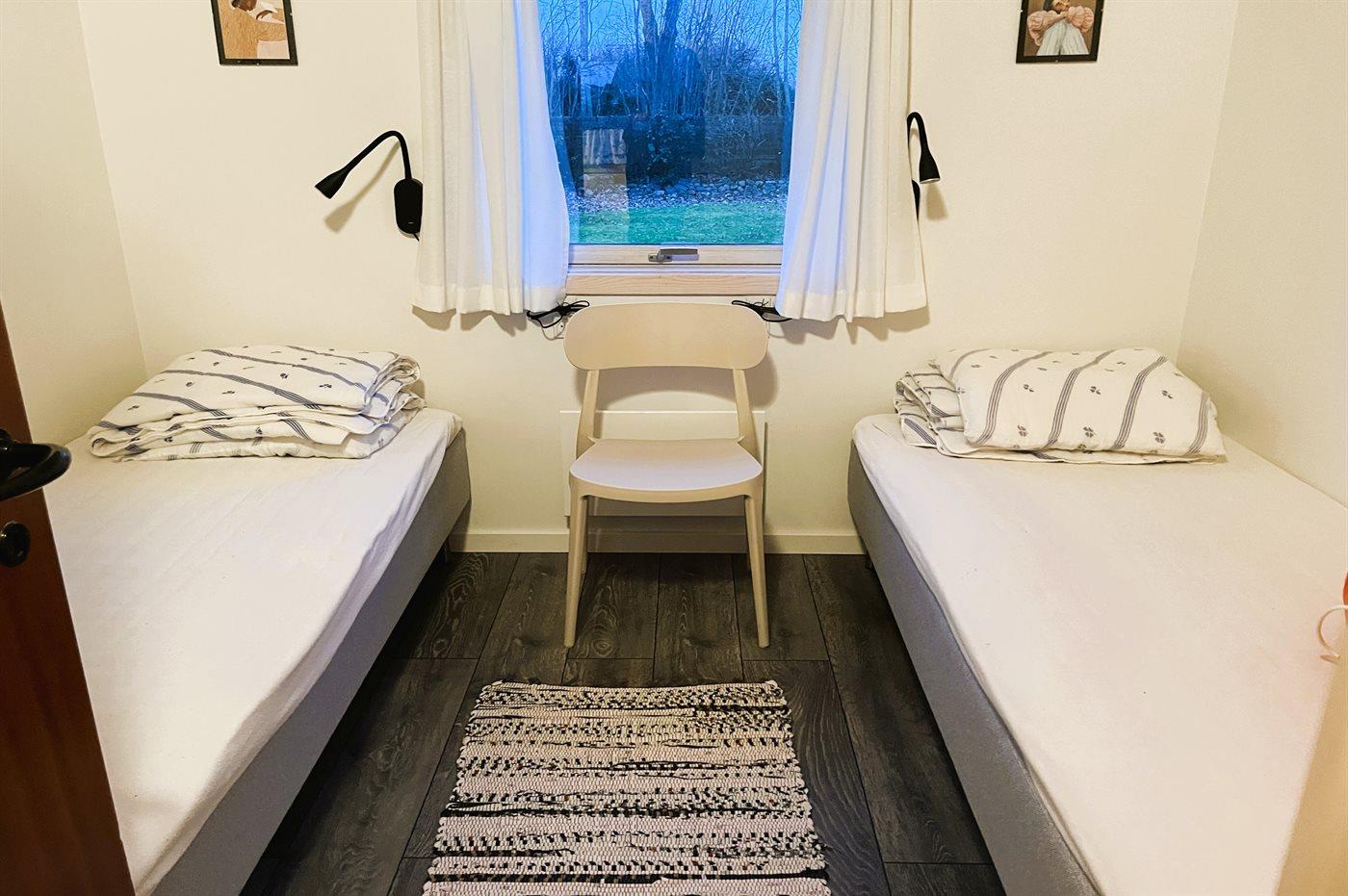 Die Schlafplätze verteilen sich auf 2 Schlafräume. 2 Schlafplätze in einem Doppelbett. 2 Schlafplätze in Einzelbetten. Ferner steht ein Kinderbett zur Verfügung.