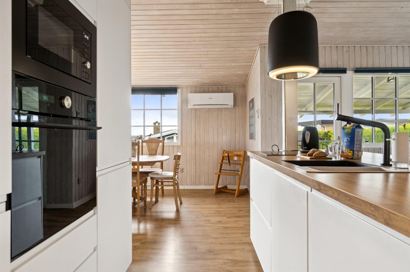Die Küche ist mit Kühlschrank ausgestattet. Außerdem gibt es 3 Induktions-Kochzonen, Umluftofen, Mikrowelle sowie Geschirrspüler.