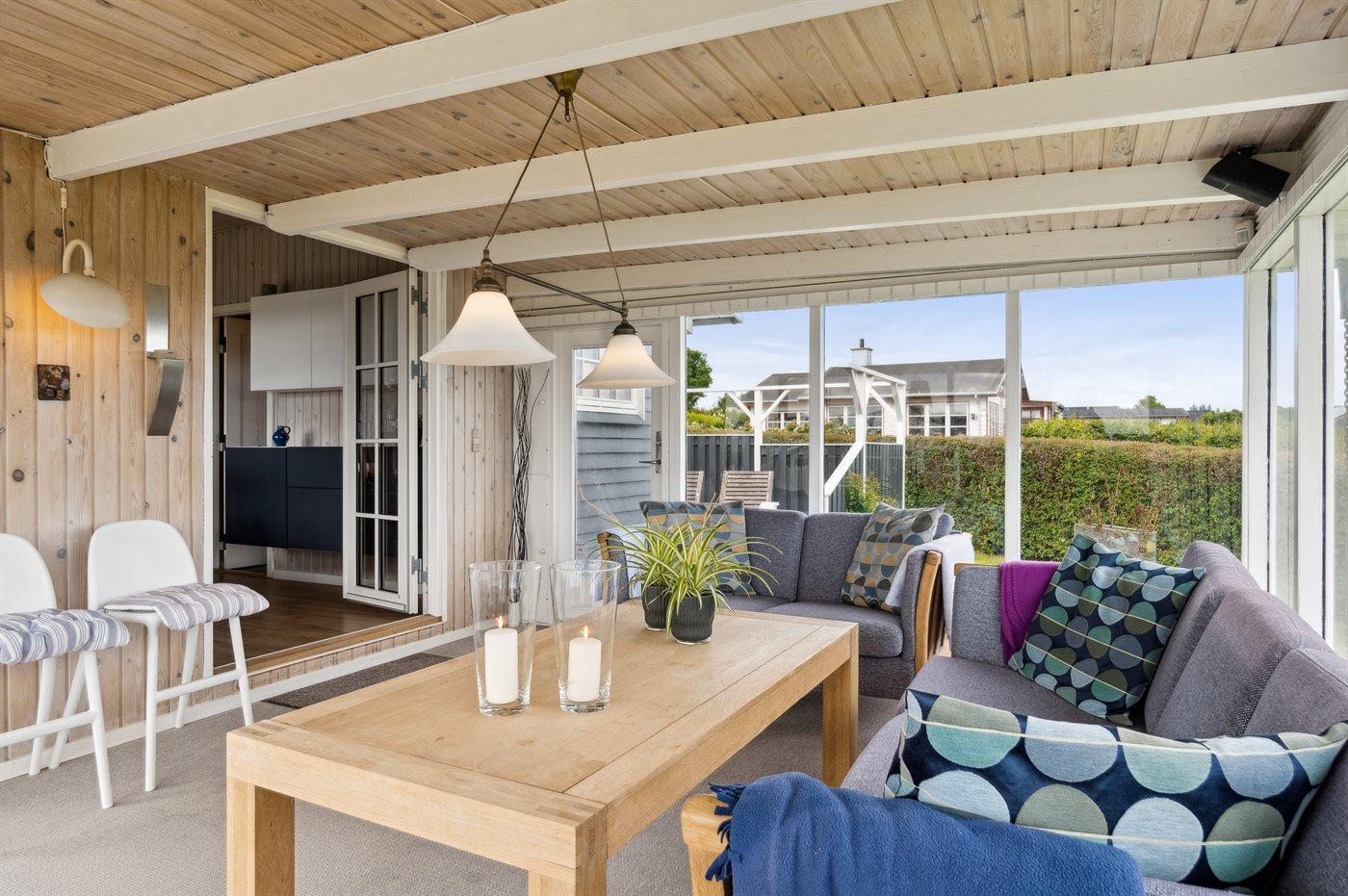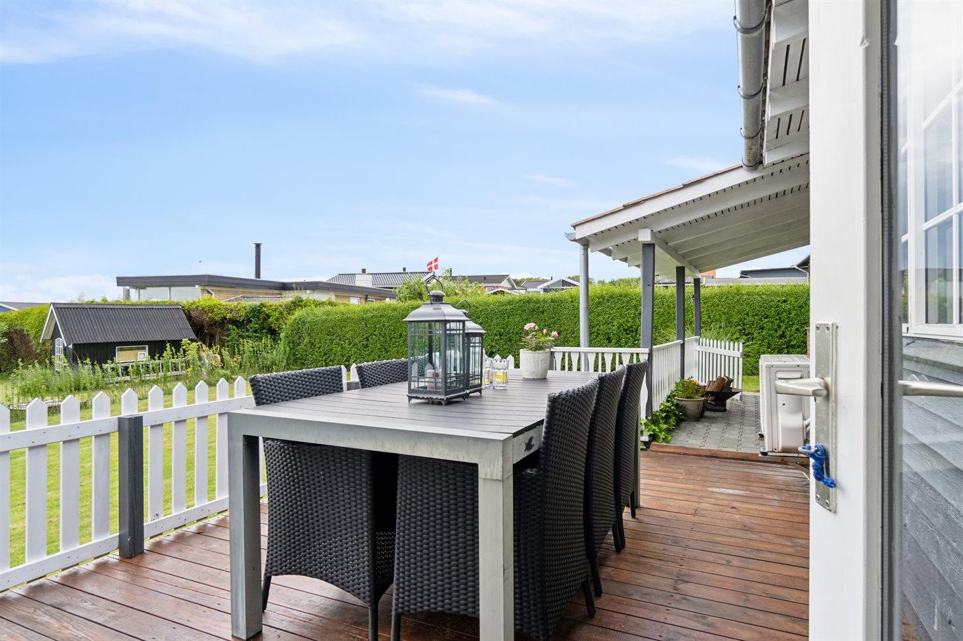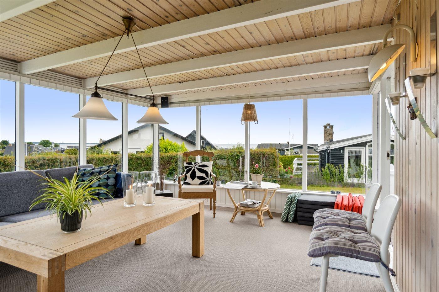 Gemütliches Ferienhaus mit schönen Terrassenbereichen rund um das Haus. Von sowohl der südöstlich ausgerichteten Terrasse als auch dem Wintergarten aus hat man einen guten Blick über den Großen Belt.