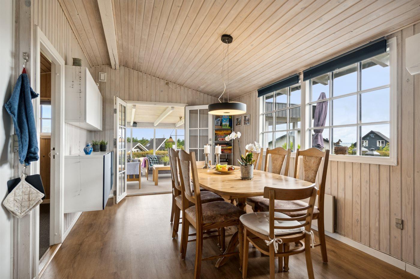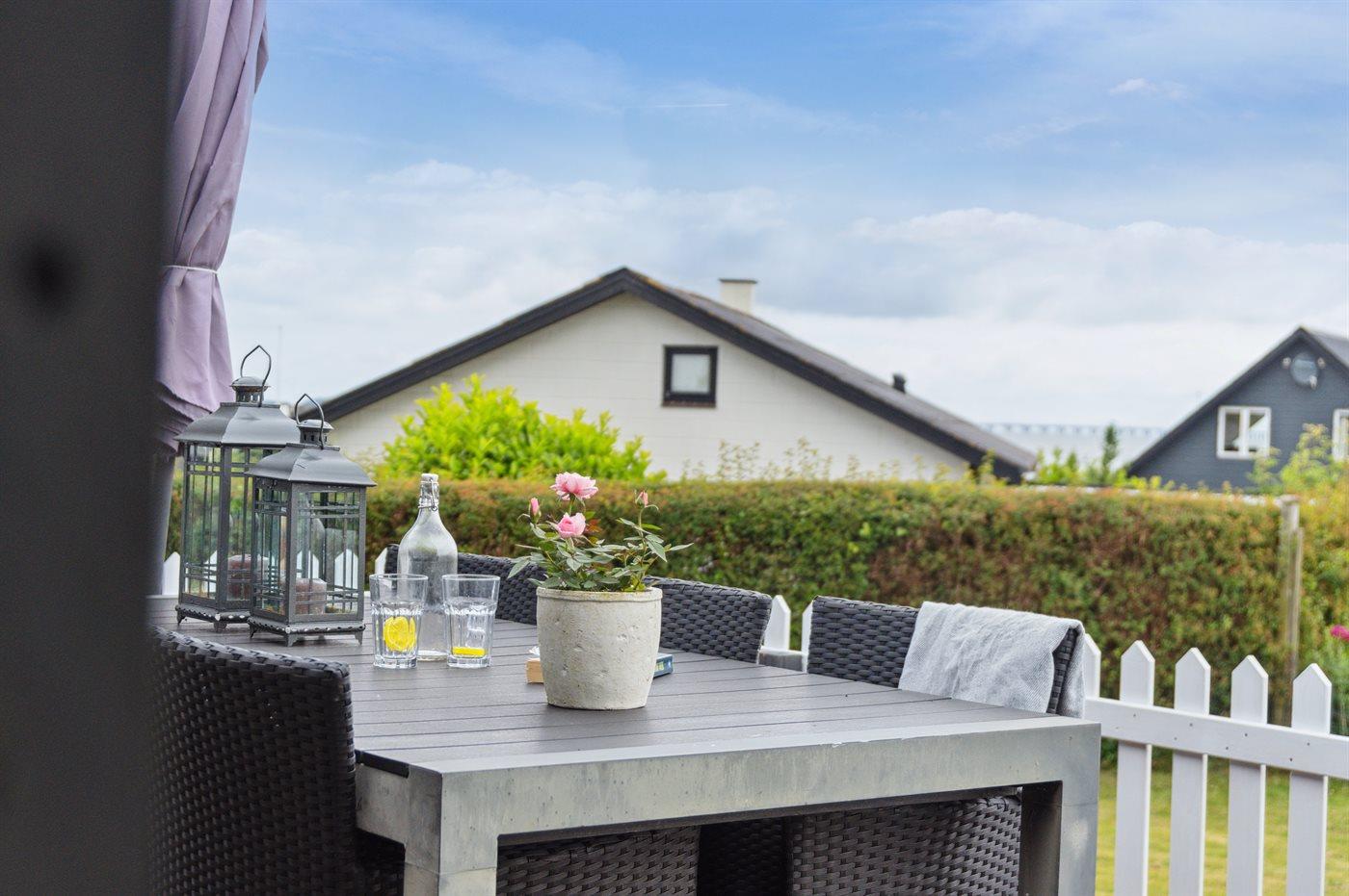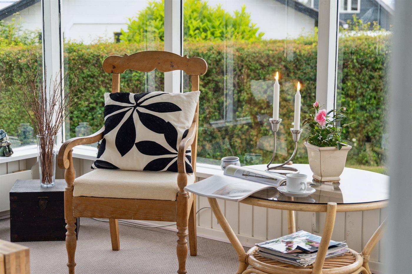 Gemütliches Ferienhaus mit schönen Terrassenbereichen rund um das Haus. Von sowohl der südöstlich ausgerichteten Terrasse als auch dem Wintergarten aus hat man einen guten Blick über den Großen Belt.