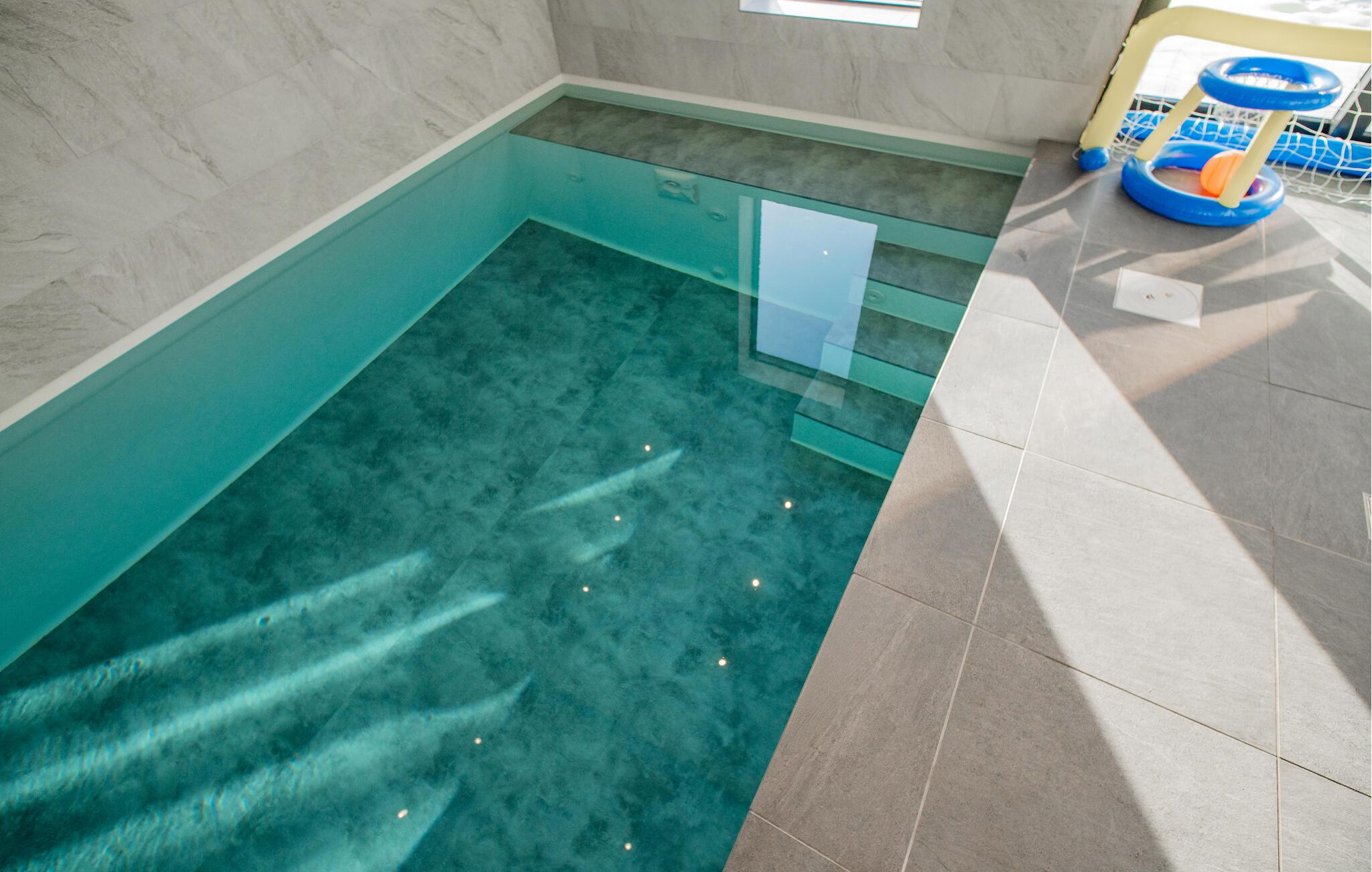 Verbringen Sie einen wunderschönen Urlaub in diesem Ferienhaus mit Innenpol und in Meeresnähe.