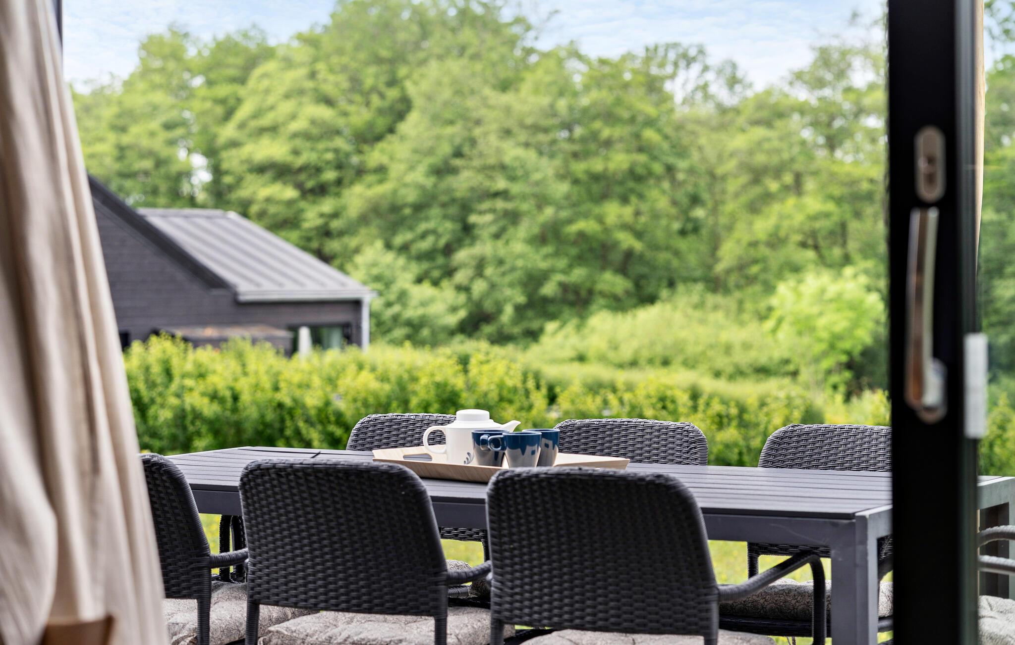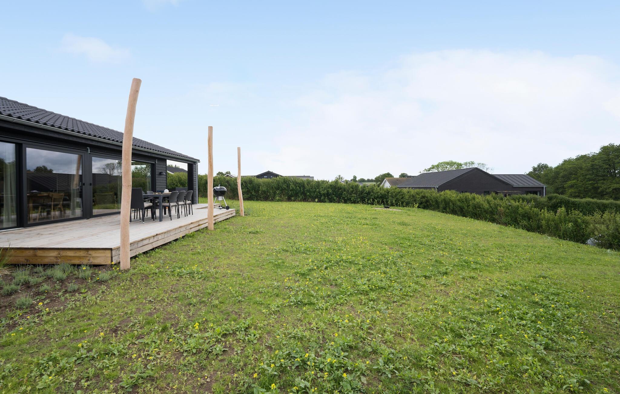 Modernes Ferienhaus am Meer bei Tårup Strand mit Terrasse und stilvollem Interieur für erholsame Urlaubstage.