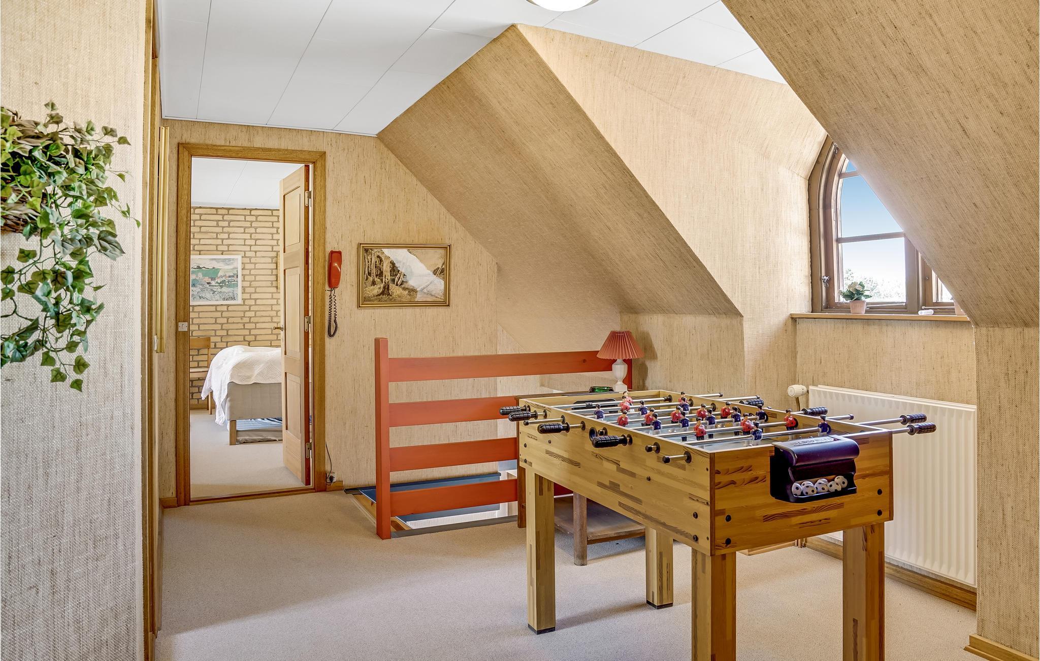 Der Strand ist nicht nur perfekt zum Angeln, sondern hat auch einen schönen Badestrand. Der Fang kann an der Fischreinigungsstelle am Haus gereinigt werden und es gibt auch eine große Gefriertruhe. Darüber hinaus können Sie bei einer Partie Tischfußball im Haus entspannen oder im Fitnessstudio im Keller trainieren. Das große Wohnzimmer lädt zu vielen gemütlichen Momenten rund um den Holzofen ein. Darüber hinaus können Sie die Sonne auf dem großen Grundstück genießen oder unter der überdachten Terrasse grillen. Sie wohnen in der linken Haushälfte, haben aber einen völlig separaten Eingang und Garten.