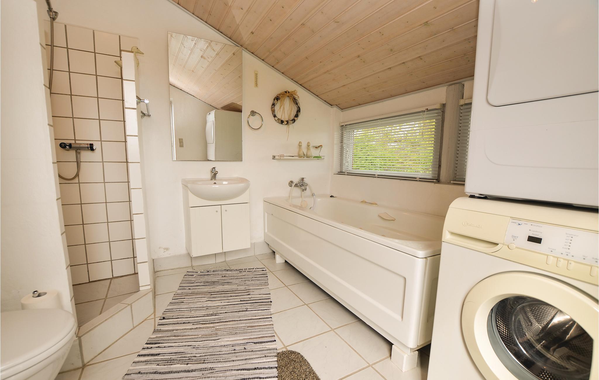 Charmantes Ferienhaus mit Meerblick und Whirlpool-Badewanne auf Sydals, ideal für erholsame Tage am Wasser.