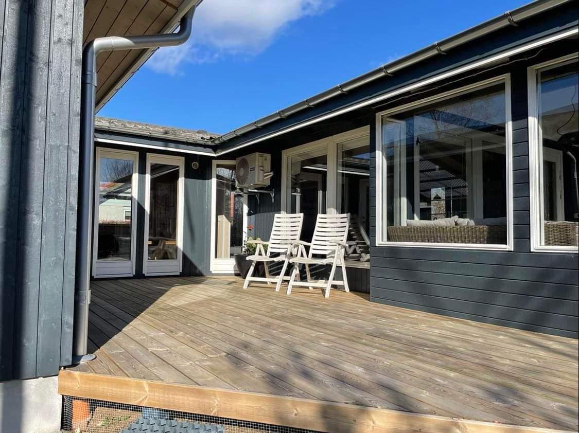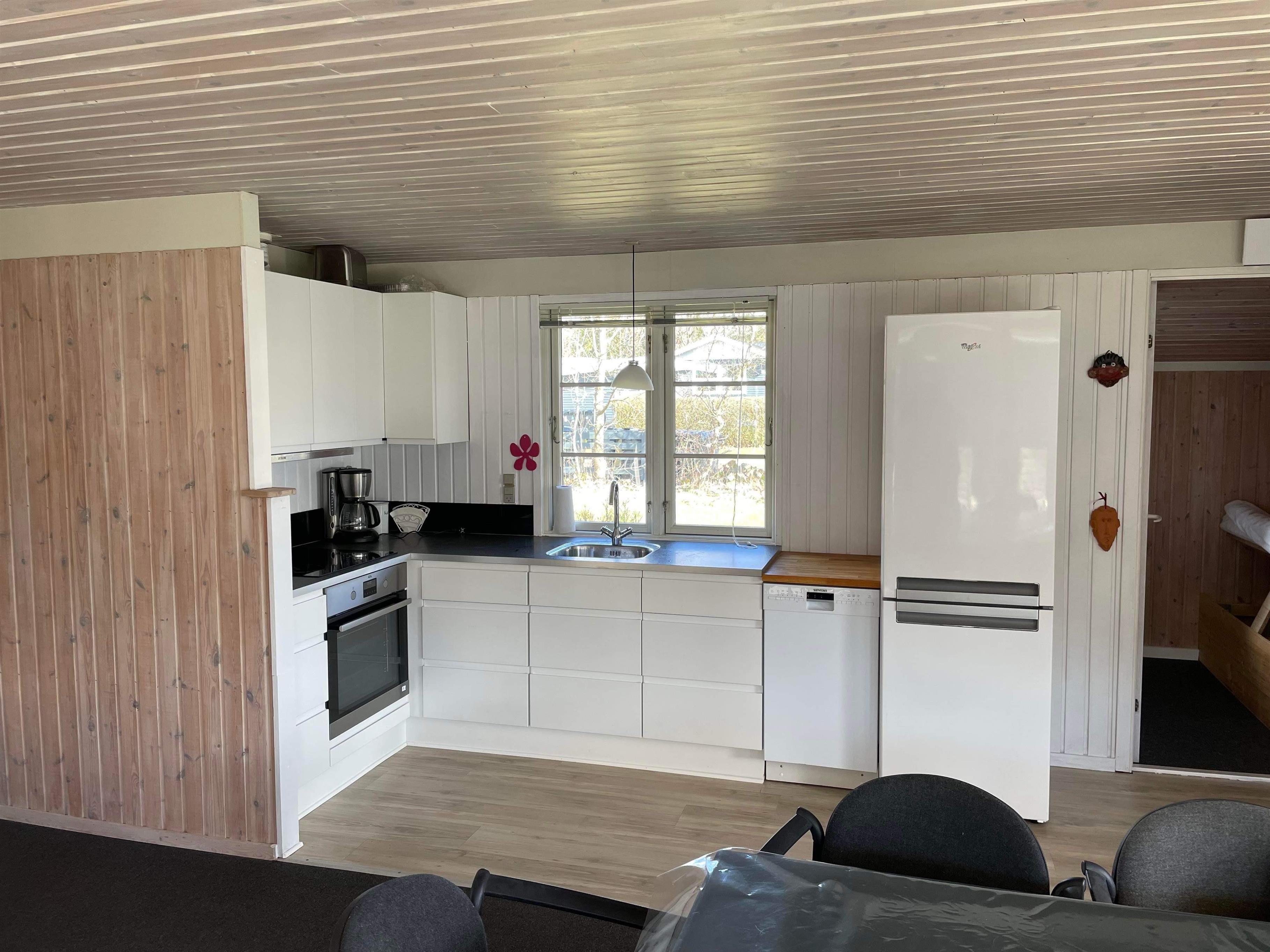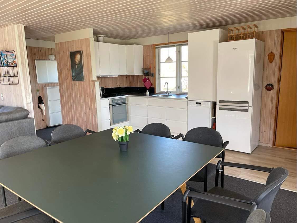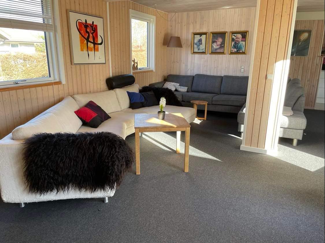 8-Personen-Haus an einer ruhigen Straße. Das Haus hat eine große Küche/Esszimmer in offener Verbindung mit dem Wohnzimmer. Das Haus hat 4 Schlafzimmer (Zimmer 1: 1 Doppelbett, Zimmer 2: 1 kleines Doppelbett (140cm), Zimmer 3: 2 Einzelbetten, Zimmer 4: 1 Doppelbett). Es gibt einen schönen Garten mit mehreren schönen Terrassen, von denen eine überdacht ist.