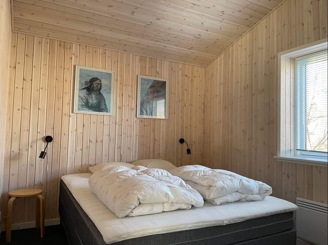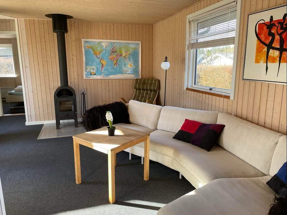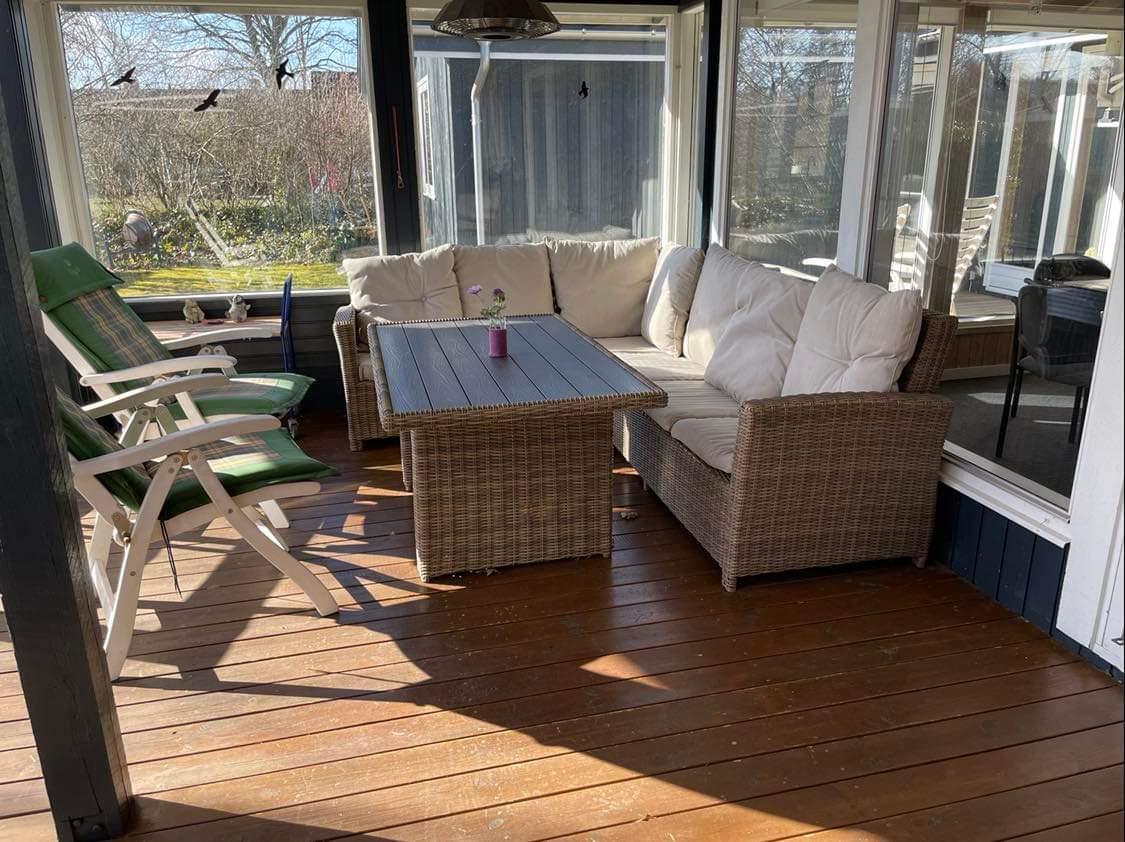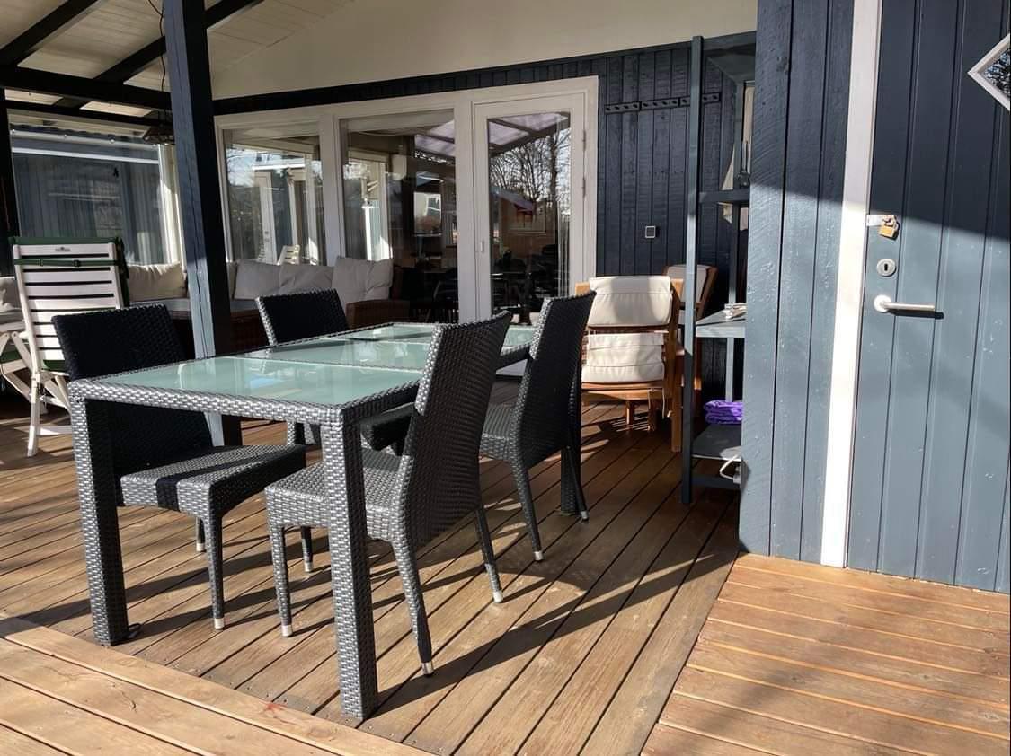 8-Personen-Haus an einer ruhigen Straße. Das Haus hat eine große Küche/Esszimmer in offener Verbindung mit dem Wohnzimmer. Das Haus hat 4 Schlafzimmer (Zimmer 1: 1 Doppelbett, Zimmer 2: 1 kleines Doppelbett (140cm), Zimmer 3: 2 Einzelbetten, Zimmer 4: 1 Doppelbett). Es gibt einen schönen Garten mit mehreren schönen Terrassen, von denen eine überdacht ist.