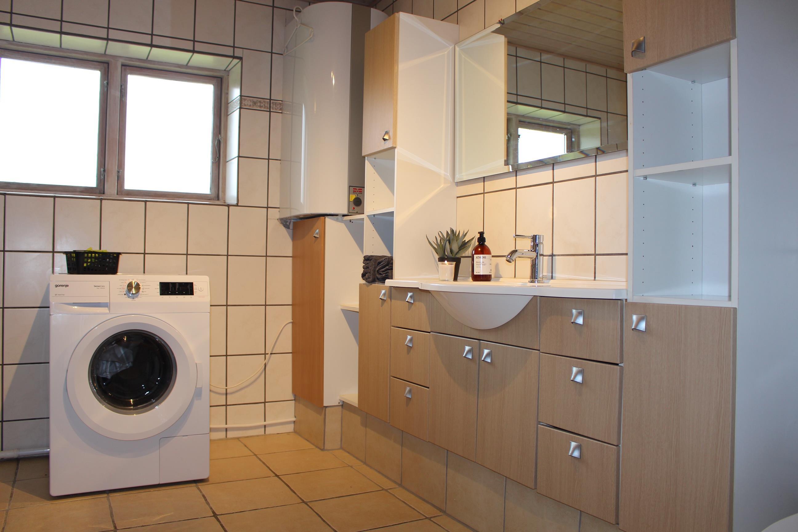 Das Haus hat ein großes Badezimmer mit Waschmaschine, eine Küche mit Geschirrspüler in offener Verbindung zum Wohnzimmer mit Holzofen und einen gut verteilten Flur mit 3 Schlafzimmern.