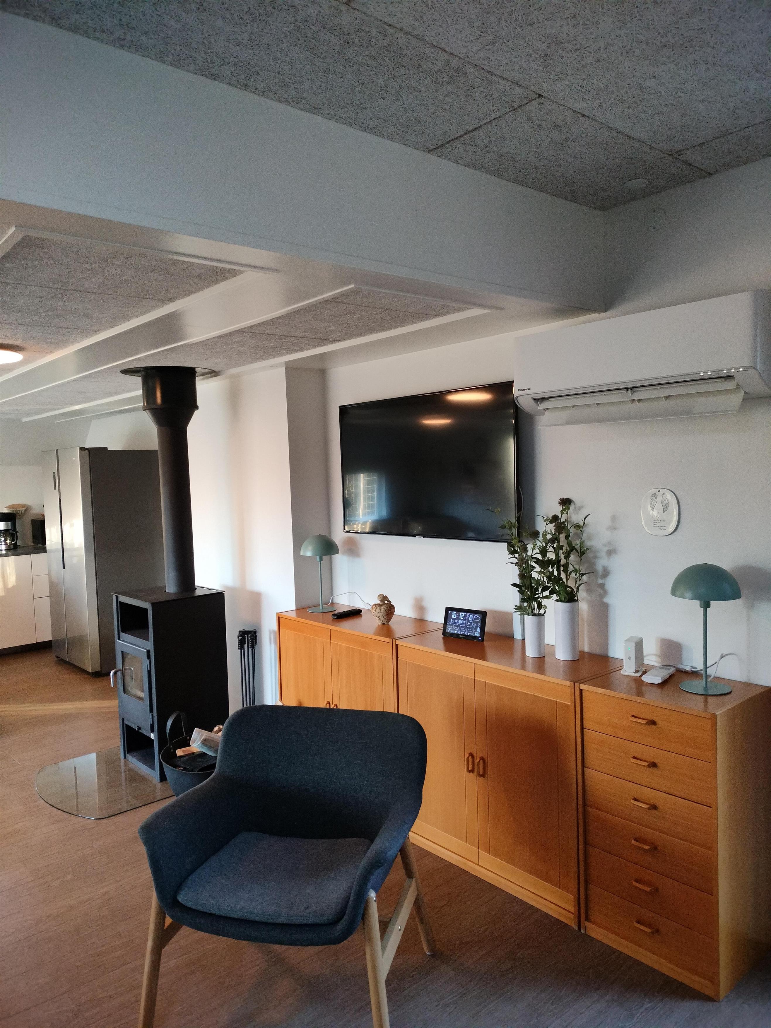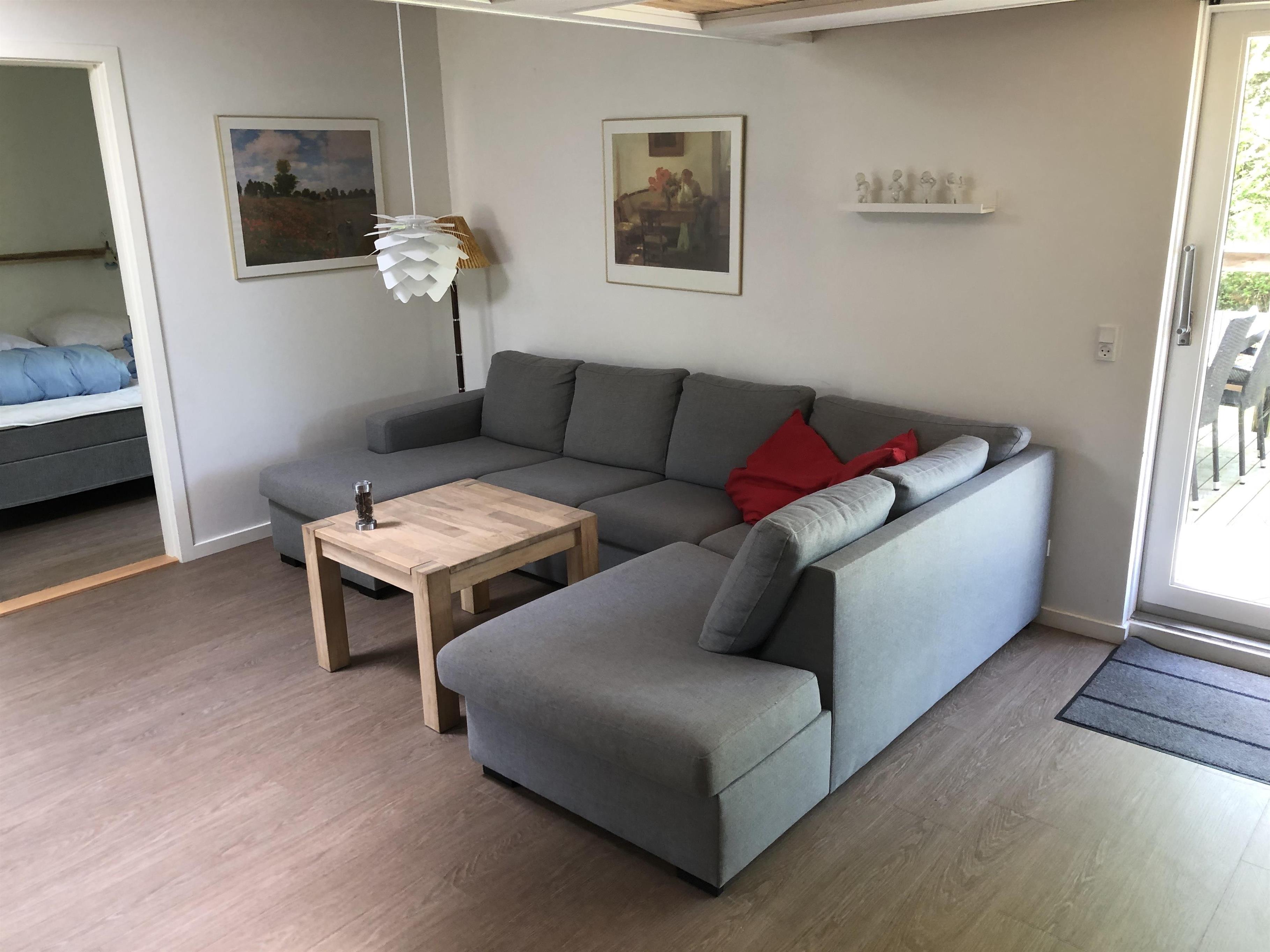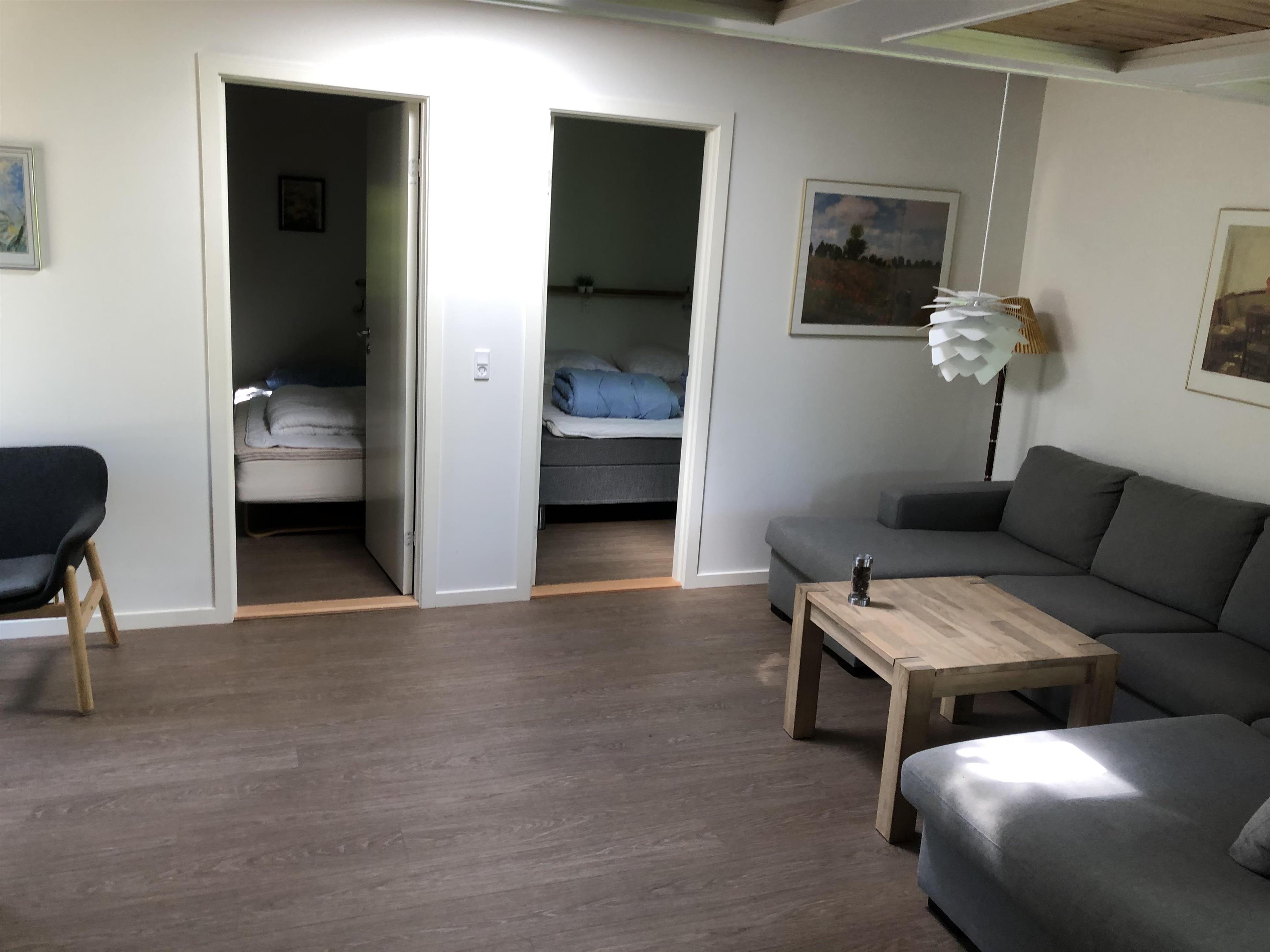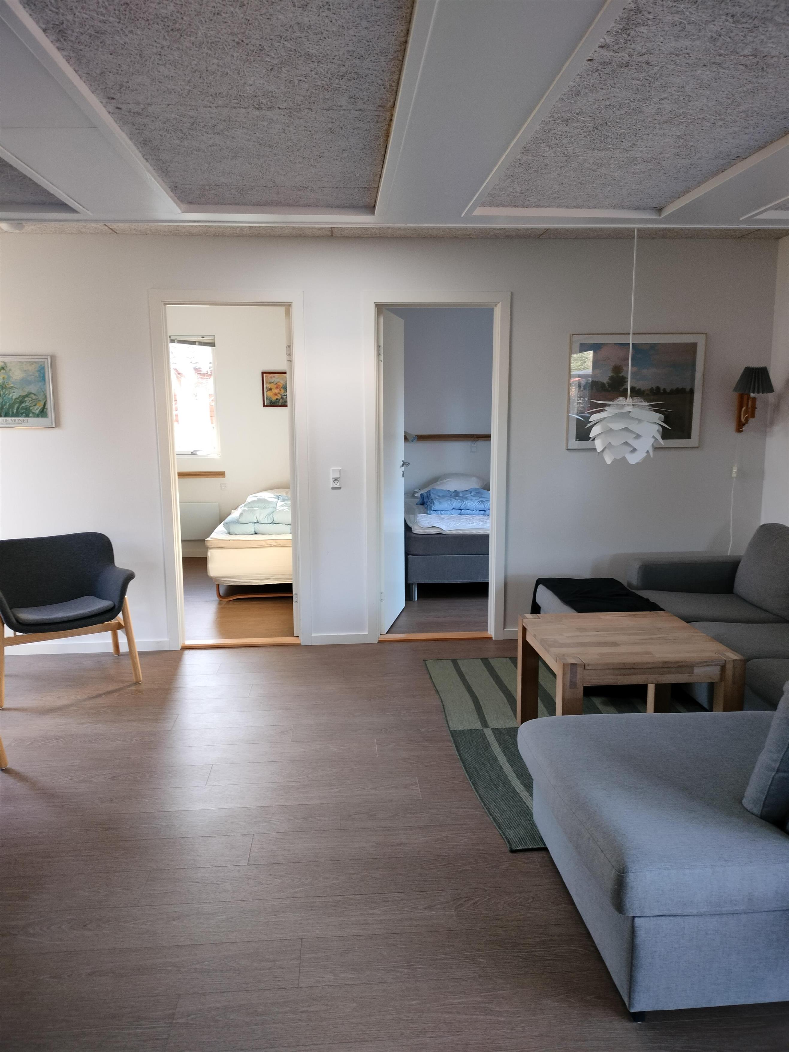 Das Haus verfügt über 5 Schlafzimmer (Zimmer 1: 1 x 140 cm Bett, Zimmer 2: 1 Doppelbett, Zimmer 3: 2 Etagenbetten, Zimmer 4: 2 Einzelbetten und Zimmer 5: 2 Einzelbetten), eine offene Küche mit Wohnzimmer und 2 Badezimmer. In einem der Zimmer ist ein Wickelplatz an der Wand angebracht. Das Haus verfügt über eine Wärmepumpe, einen Holzofen und Elektroheizung. Es gibt einen schönen, ungestörten Garten auf leicht hügeligem Gelände.