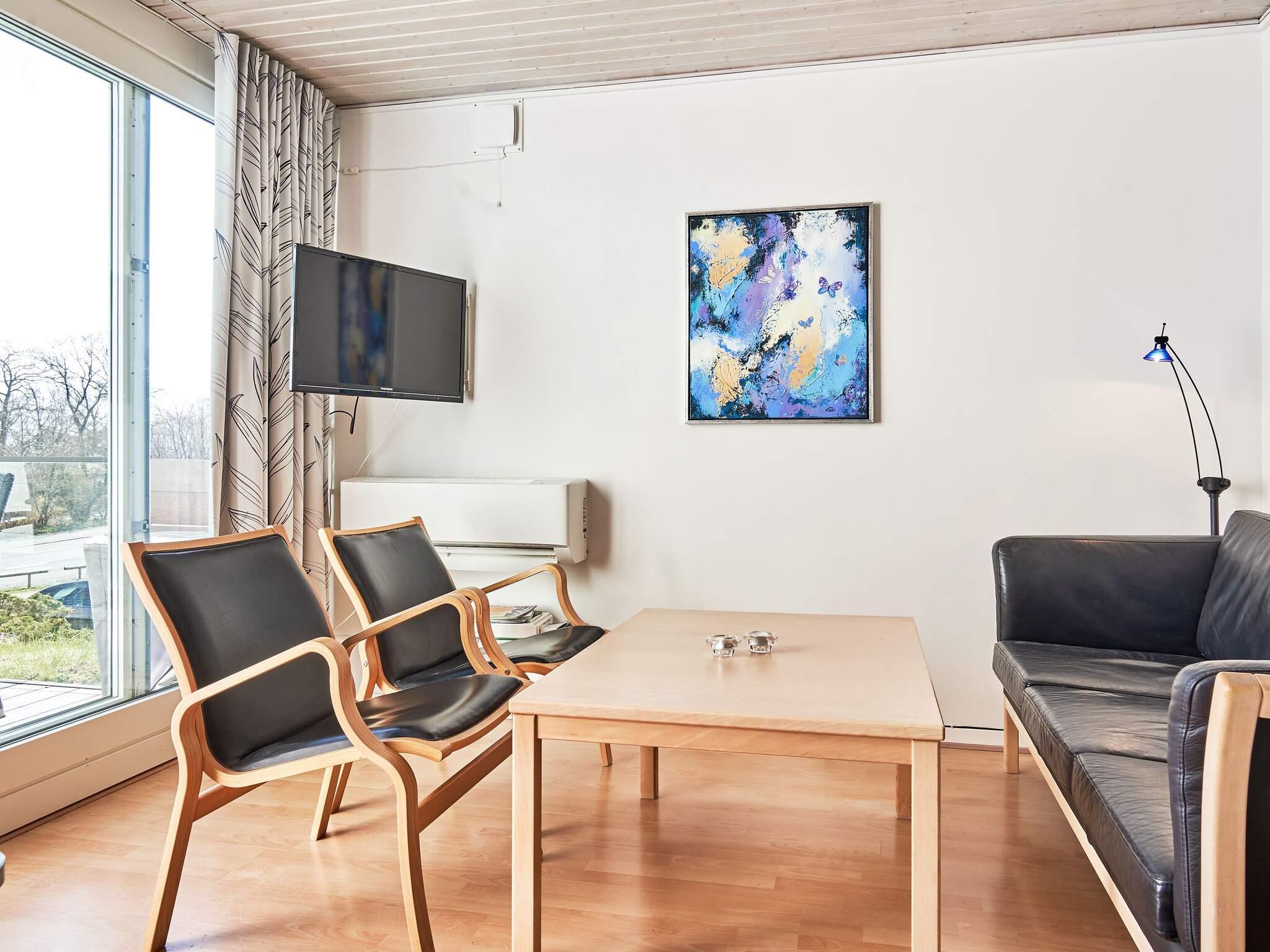Diese geräumige Ferienwohnung liegt am Hang oberhalb von Sandkås mit schönem Meerblick von Wohnzimmer, Küche und Terrasse. Die Wohnung ist im nordischen, minimalistischen Stil eingerichtet und verfügt über eine offene Küche zum Ess- und Wohnzimmer, mit Zugang zur Terrasse mit Blick auf die Ostsee. Über den Verteilerkorridor gelangt man in das Badezimmer und zu den Schlafzimmern; ein größeres mit Doppelbett, das zweite aufgeteilt und mit drei Schlafplätzen in Betten.