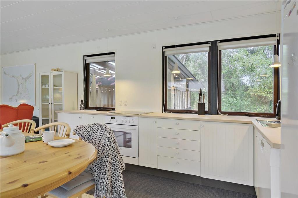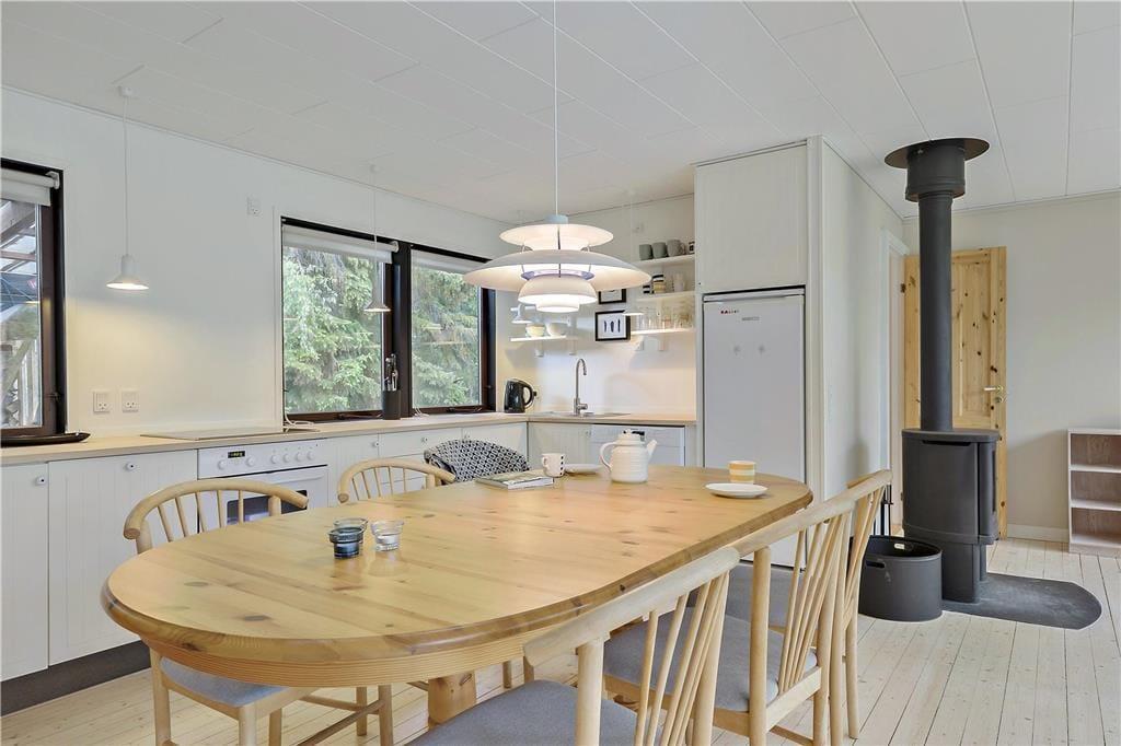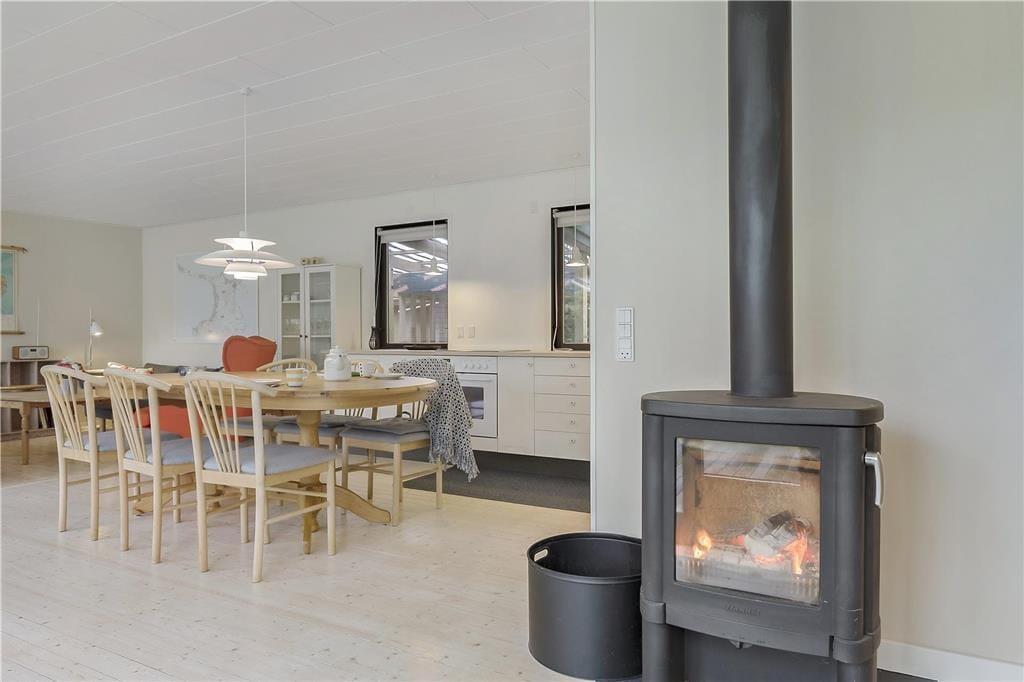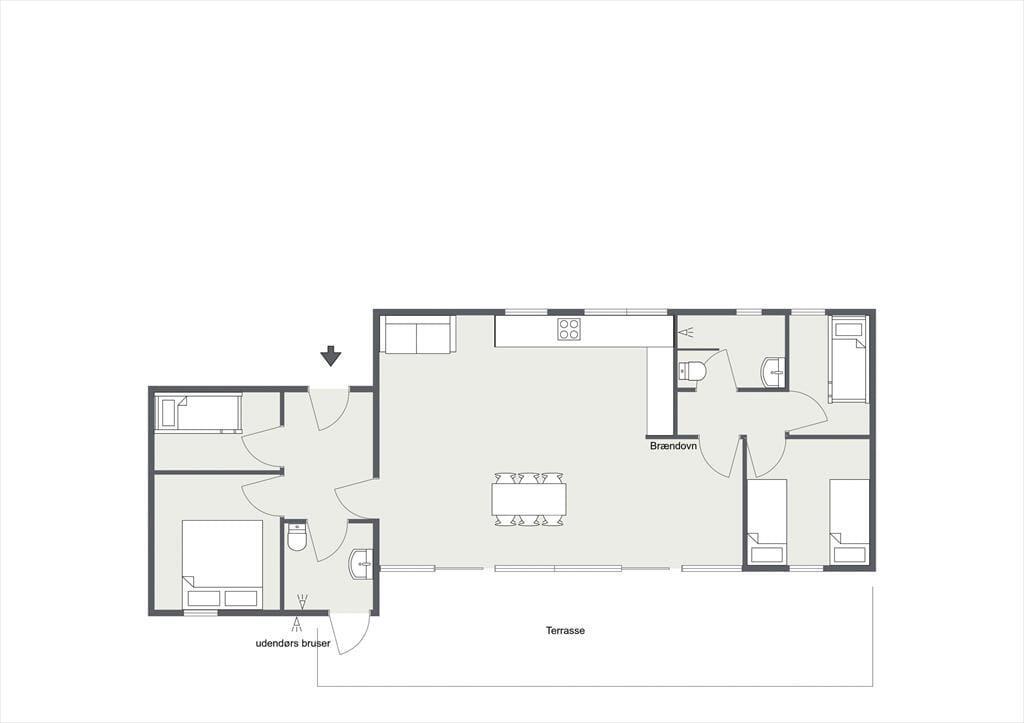 Der Innenbereich präsentiert sich Ihnen in einem modernen und geschmackvoll gestalteten Wohnambiente. Der große Wohnraum empfängt Sie mit einem Kamin, einer Terrassentür und großen Fensterpartien in Richtung des Gartens. Die offene Küche mit einem Geschirrspüler bietet Ihnen die Möglichkeit, zusammen mit Ihren Lieben das Essen vorzubereiten und dadurch viel wertvolle gemeinsame Zeit zu verbringen. Die Schlafzimmer verteilen sich in zwei Bereiche. Ein Bereich beinhaltet einen Raum mit einem Doppelbett und einen Raum mit einem Etagenbett. Am anderen Ende des Haus befindet sich der zweite Schlafbereich, der sich aus einem Raum mit zwei zusammenschiebbaren Einzelbetten und einem Raum mit einem Etagenbett zusammensetzt. Diese wohl durchdachte Raumaufteilung macht das Objekt besonders für den Urlaub zweier befreundeter Familien attraktiv. Selbstverständlich verfügt das Ferienhaus auch über ein schönes, neueres Badezimmer mit einer Dusche. Ein Fernseher ist nicht vorhanden. Dank der Internetverbindung können Sie jedoch Filme und ähnliches über Ihr eigenes Tablet oder Laptop streamen.