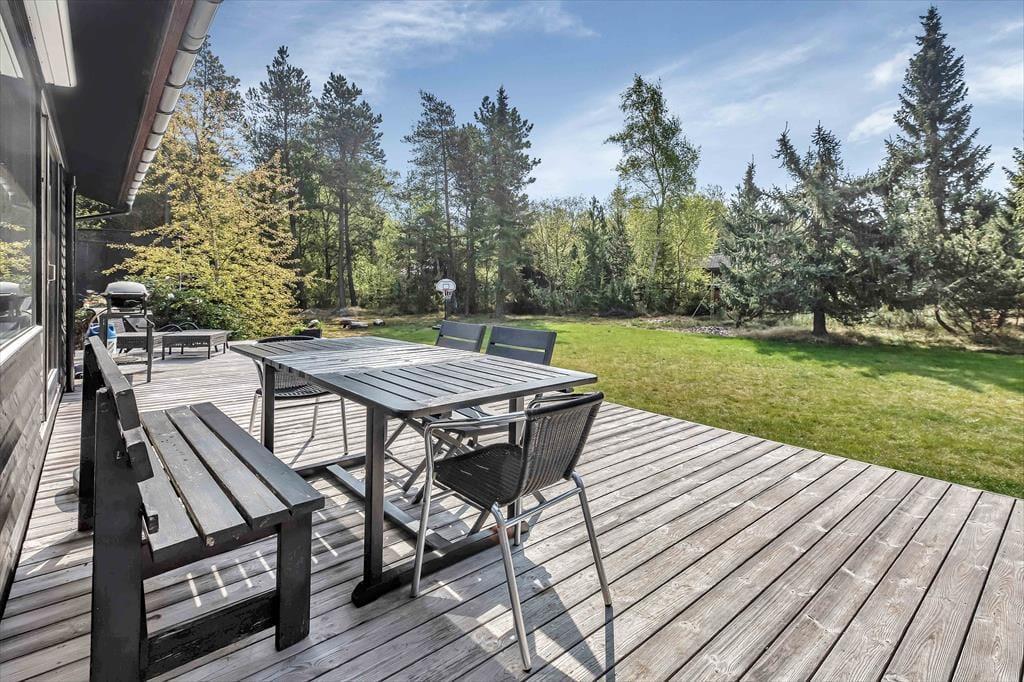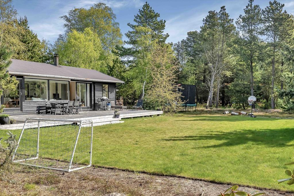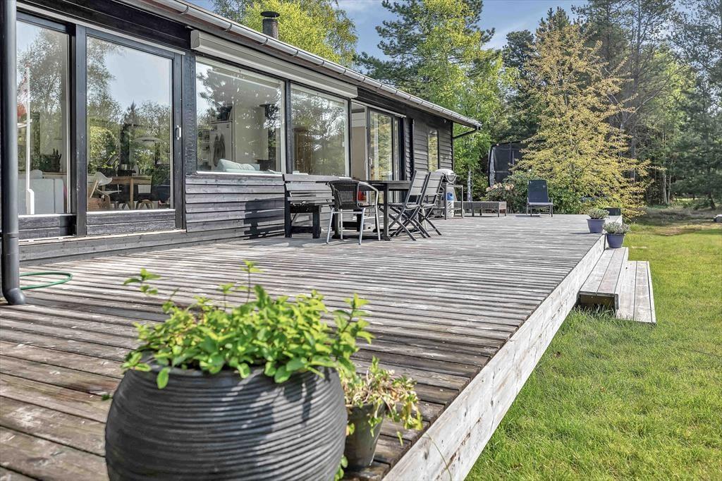 Die große Holzterrasse mit einer elektrischen Markise lädt zu ausgedehnten Sonnenbädern und geselligen Runden mit einem köstlichen Essen vom Grill ein. Mit ein wenig Glück können Sie auf dem Grundstück Rehe beobachten. Das Naturgrundstück ist teilweise mit Heide bewachsen und bietet Ihren Kindern einen herrlichen Spielbereich. Während Sie sich in aller Ruhe auf der Terrasse erholen und entspannen, werden Ihre Kinder vergnügt das tolle Grundstück erkunden und schaukeln.