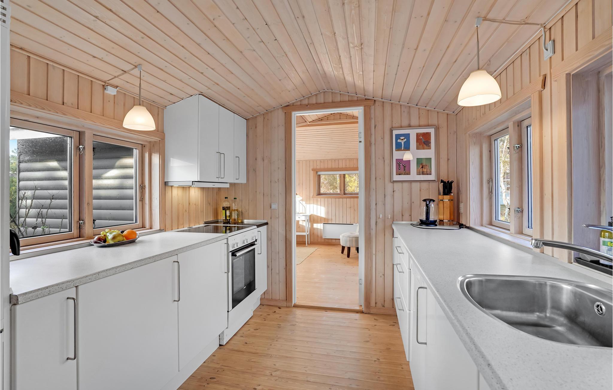 Einladendes und gemütliches Ferienhaus dicht einem der besten Badestrände Dänemarks mit Dünen und kilometerlangen Sandstränden auf einem 1500 m² großen Naturgrundstück. Wenn Sie hier auf der Terrasse sitzen, dann können Sie die Dünen sehen und das tosen des Meeres hören. Im Haus gibt es eine gute Küche, ein Esszimmer als Verlängerung des Wohnzimmers mit Kaminofen und Ausgang auf eine überdachte und eine offene Terrasse. Badezimmer mir Dusche und Waschmaschine, drei Schlafzimmer, eins davon mit Ausgang auf die offene Terrasse. Das Haus liegt auf einem fast 1.500 m² großen Naturgrundstück mit Heidekräutern und älteren Nadelbäumen. Die Natur ist schön von den Einflüssen der Eiszeit auf die Landschaft geprägt. Für Angler ist die Gegend ein Paradies, aber es ist auch nicht weit bis nach Havnebyen, der einzige richtige Fischerhafen von Odsherred, wo Sie frischen und frisch geräucherten Fisch kaufen können. Sie fahren eine Viertelstunde zum Sommerland Sjælland mit unzähligen Attraktionen für Kinder und Junggebliebene. Ganz draußen auf dem Gniben, der Spitze der Landzunge von Seeland, können Sie angeln und am Strand die gesamte Halbinsel umwandern. Sie können auch auf dem Gelände der Artillerieschule spazieren gehen. In der Nähe gibt es drei Golfplätze, den Odsherred Zoo in Asnæs und das Schloss Dragsholm aus dem 13. Jahrhundert, wo angeblich ein weißes Gespenst umgeht, das wunderschön in der Natur der Bucht von Nekselø liegt, wo es auch kulinarisch viel zu erleben gibt. Besuchen Sie auch die Handelsstadt Nykøbing mit ihrer charmanten Fußgängerstraße mit interessanten Geschäften und Cafés, oder besuchen Sie Rørvig und genießen Sie die Stimmung im Hafen, wo Sie jeden Tag frisch gefangenen oder geräucherten Fisch kaufen können, während Ihre Kinder von der Mole aus Krabben fangen.