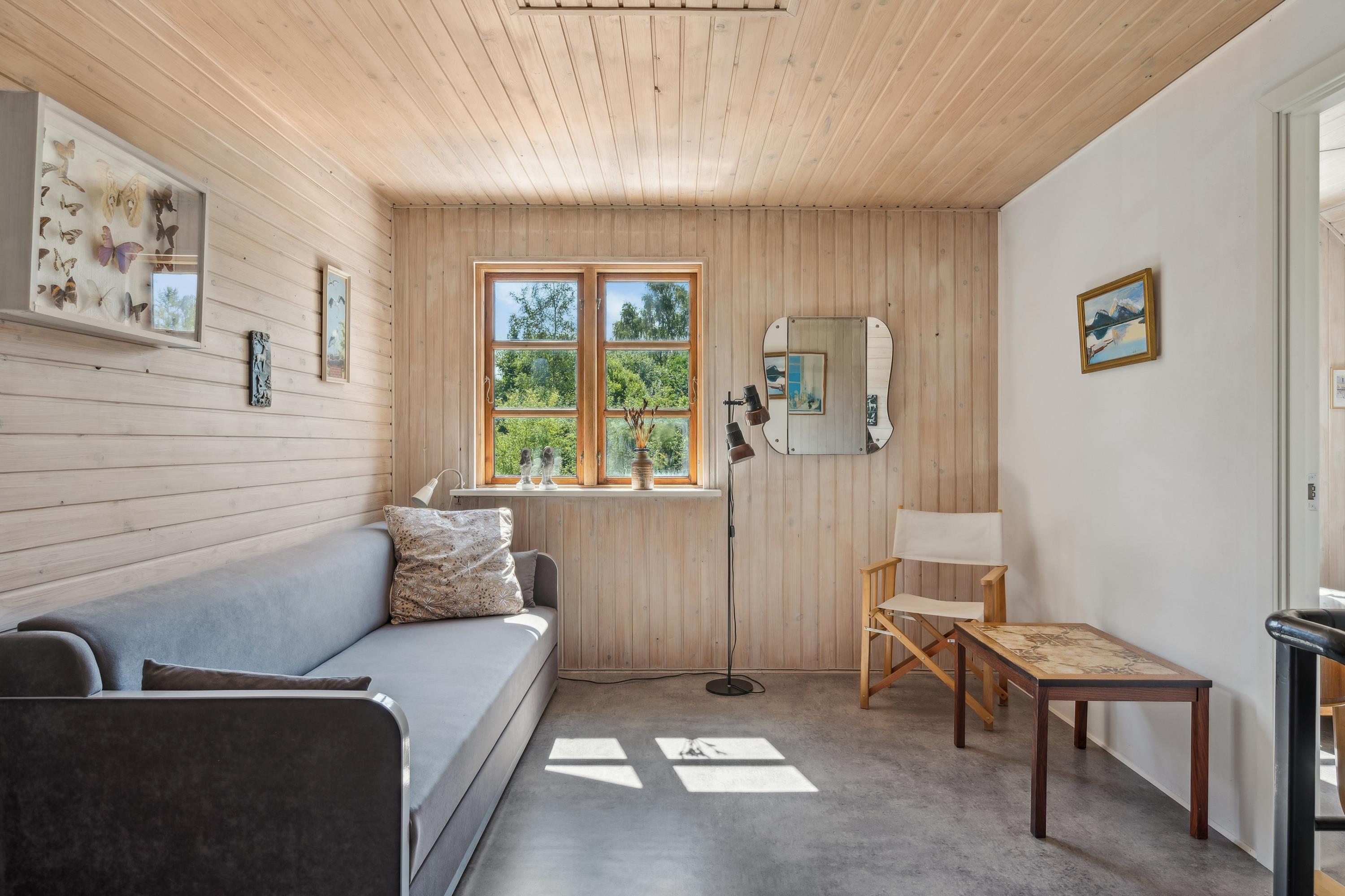 In ruhiger und schöner Umgebung auf Djursland liegt dieses ältere, aber gemütliche Ferienhaus auf zwei Etagen. Im Erdgeschoss befindet sich ein schöner Wohnraum mit unter anderem Holzofen und Wärmepumpe sowie Zugang zu einer überdachten Terrasse mit Gartenmöbeln. Angrenzend an das Wohnzimmer liegt die funktionale Küche mit unter anderem Geschirrspüler. Schönes Badezimmer mit Dusche. Im Obergeschoss befinden sich die Schlafplätze des Ferienhauses. Das Ferienhaus liegt auf einem großen Naturgrundstück mit Rasen und Bäumen – ideal zum Spielen und Entspannen. In der Umgebung gibt es Wälder und Felder mit reichlich Tierleben. Die Bahnstation in Kolind ist in 10 Minuten mit dem Auto erreichbar – von dort kann man mit der Stadtbahn nach Grenaa oder Aarhus fahren.
