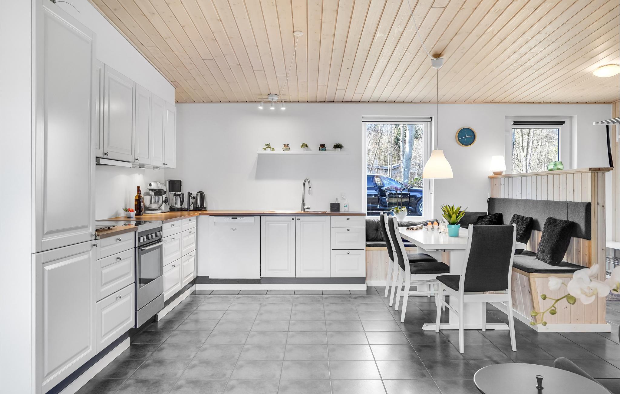 Modernes Ferienhaus mit Pool. Durch die drei Schlafzimmer ist das Haus am besten für eine Familie oder 2 Paare geeignet. Wasserratten werden vom hellen Poolraum begeistert sein. Die Klinkerfußböden haben behagliche Fußbodenheizung. Die schöne helle Einrichtung ist die richtige Umgebung zum Entspannen. Die Terrasse erreichen Sie vom Wohnzimmer und der Küche. Das mit Gras bewachsene Grundstück ist eingezäunt, so können Ihre Kinder gut spielen. Die Ferienhaussiedlung Thorsager liegt zentral auf Djursland, von hier sind Strand, Wald und Aarhus leicht zu erreichen. ZDF als einziger TV-Kanal.