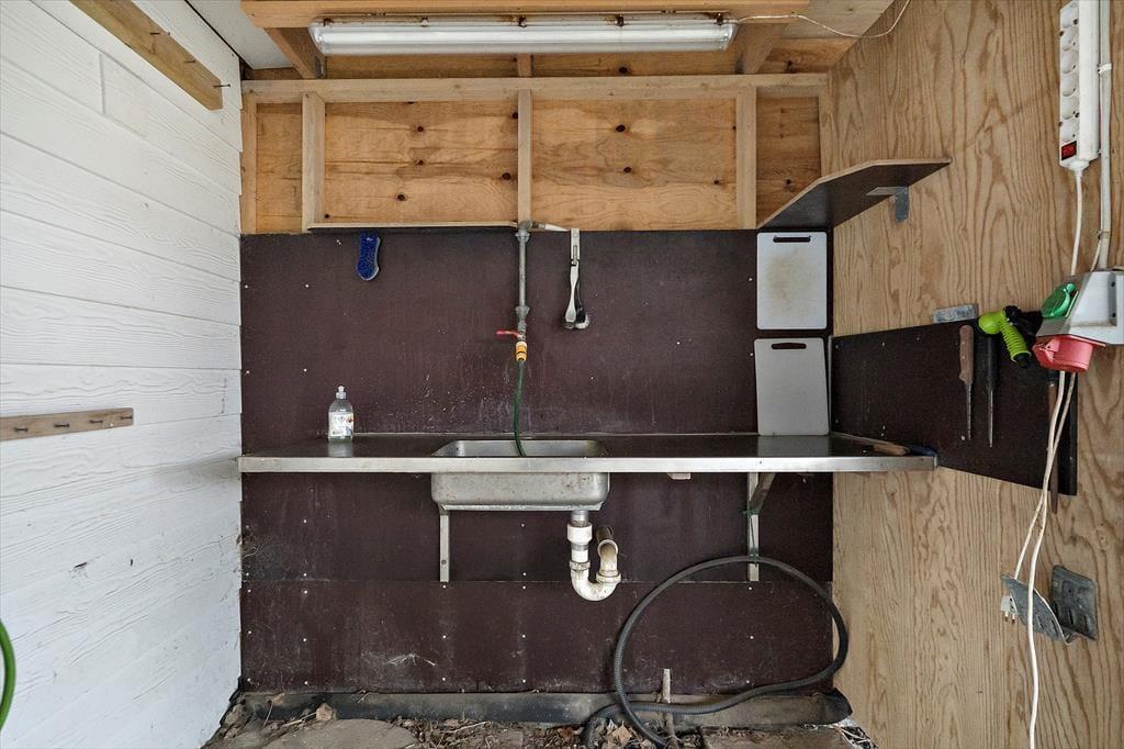 Von der Küche gelangt ihr direkt auf die Terrasse und in den geschlossenen Garten, wo reichlich Platz zum Spielen und Entspannen ist. Die Kinder können hier Ball spielen oder Fangen, während die Erwachsenen die Sonne und die frische, salzige Meeresluft genießen. Die Terrasse lädt zu gemütlichen Nachmittagen mit einem Glas Wein, Gesprächen über die Erlebnisse des Tages und zu entspannten Abenden unter freiem Himmel ein. Wenn die Sonne untergeht, verwandelt sich der Himmel in ein Farbspiel aus Rot- und Orangetönen – die perfekte Kulisse für ein Abendessen im Freien. Im großen Schuppen gibt es Platz für Fahrräder und Angelausrüstung, sodass ihr bestens vorbereitet seid für eure nächsten Touren in die Natur.